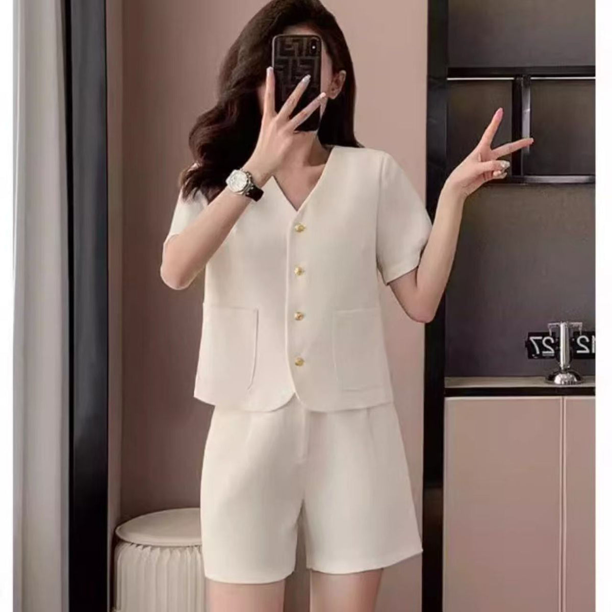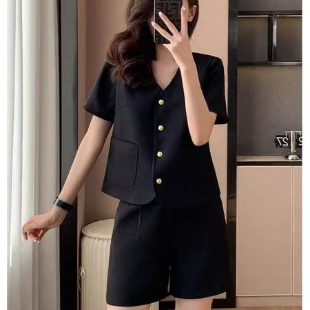 Two-Piece Set: Includes a short-sleeve jacket and matching shorts for effortless coordination.
