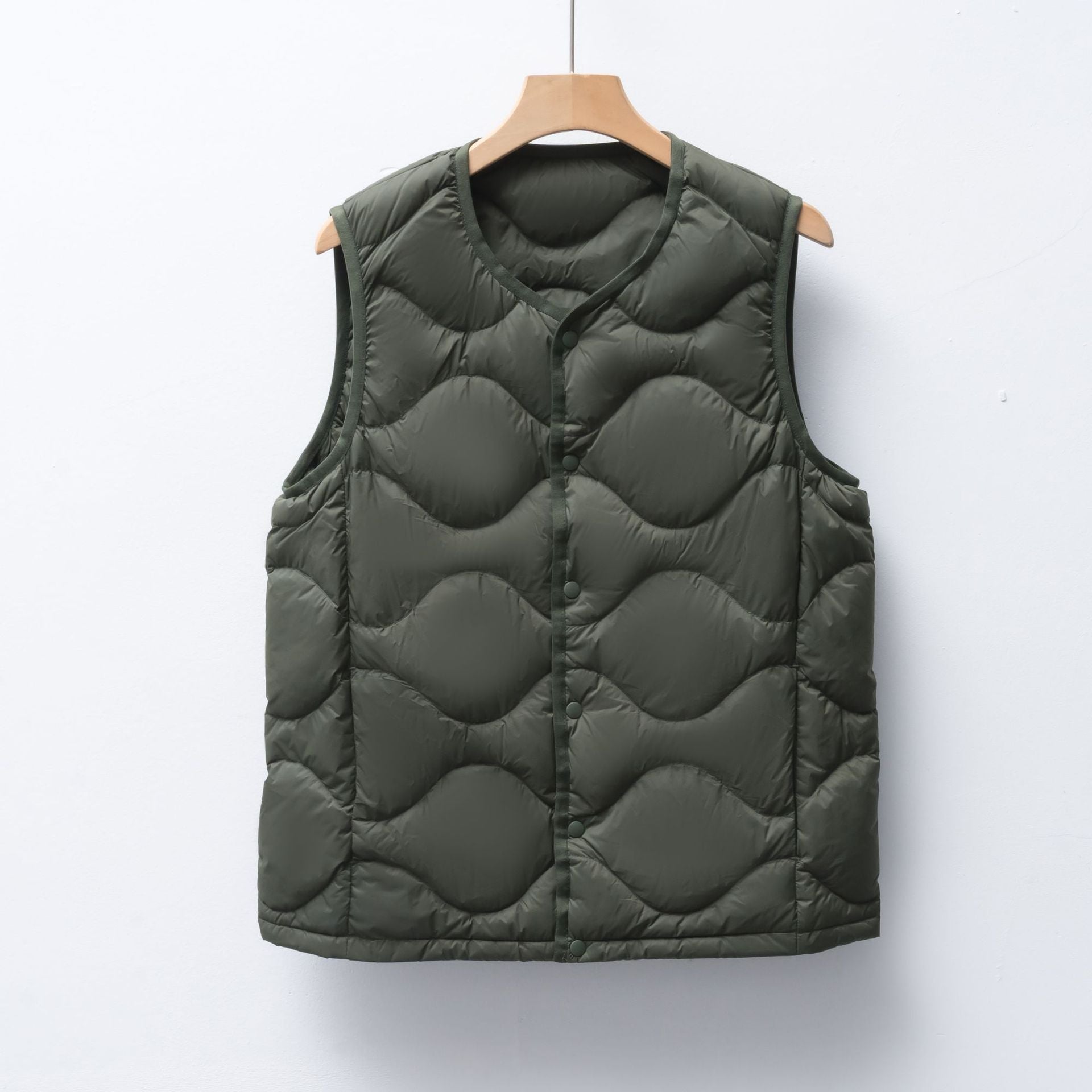 Pinghu Velvet Down Vest β Round Neck & V-Neck Solid Color