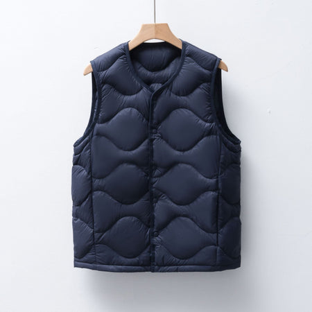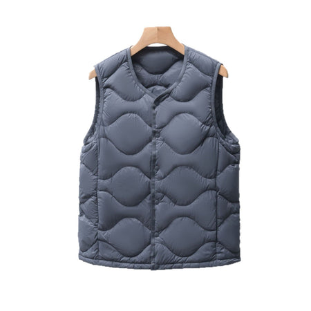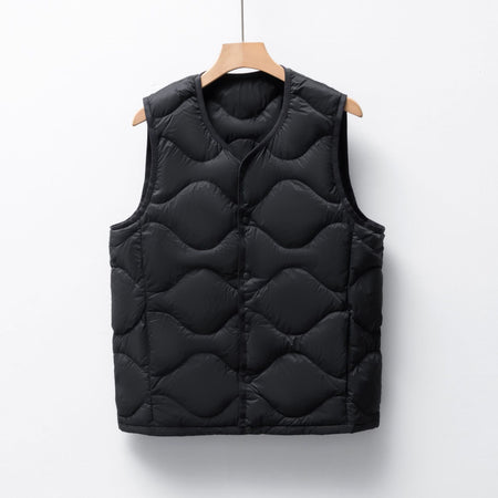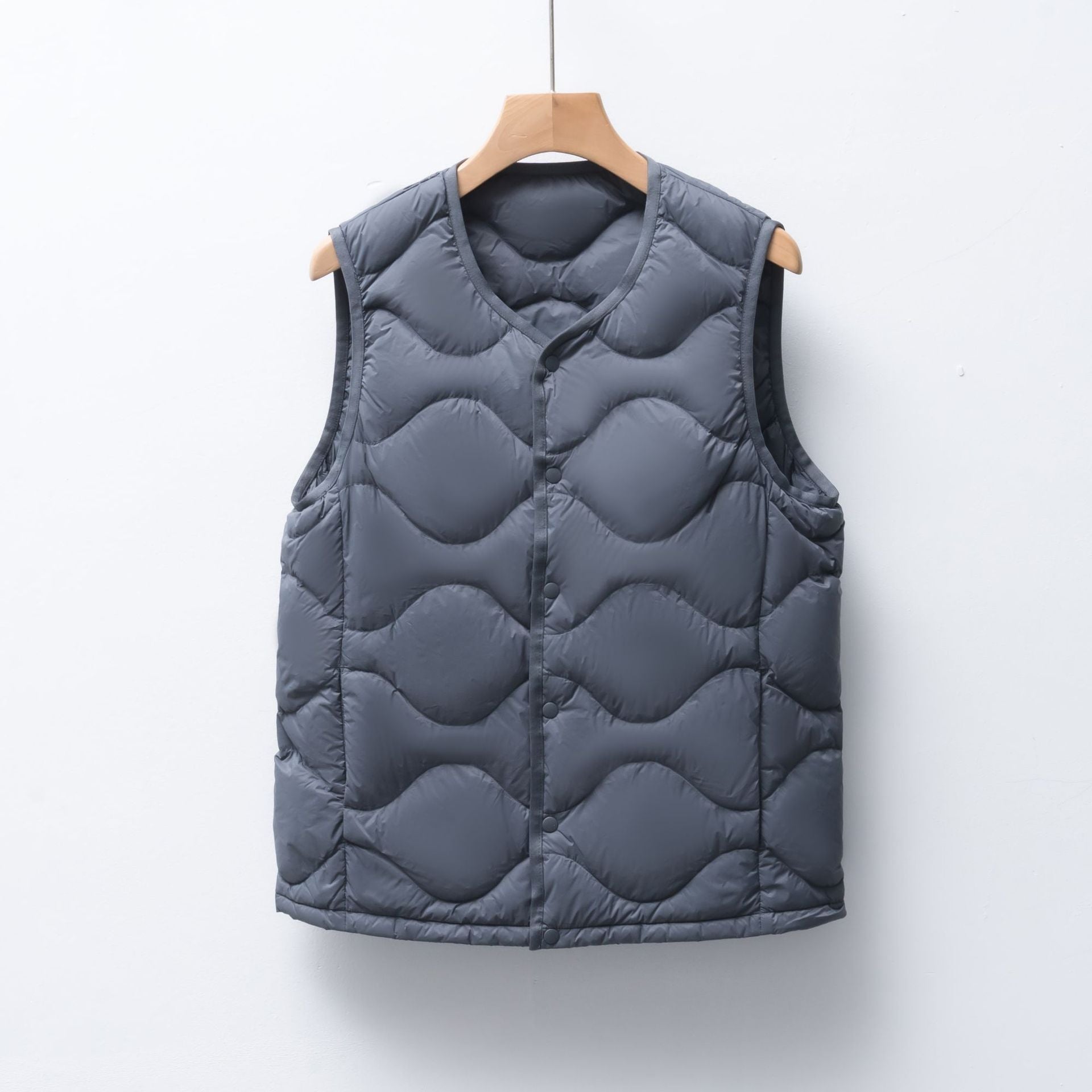 Elevate your casual wardrobe with the Pinghu menβs 90% velvet down vest, crafted with national standard quality down. Designed with round or V-neck options, this vest is perfect for autumn/winter layering.