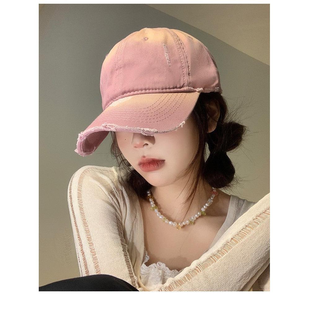 Step out in style with this American-style pink baseball cap, featuring a trendy ripped design and a wide brim that adds extra sun protection. The small peaked cap with a deep fit offers a flattering silhouette that complements your face shape, perfect for casual days or outdoor adventures.