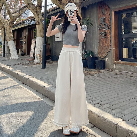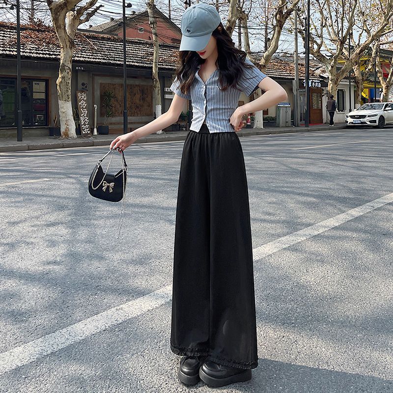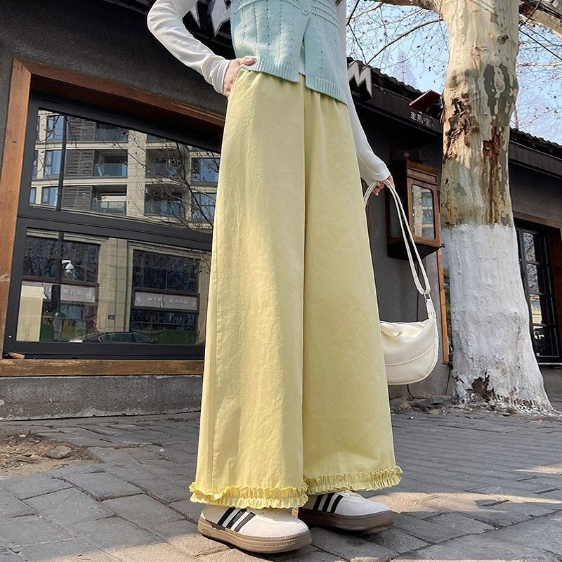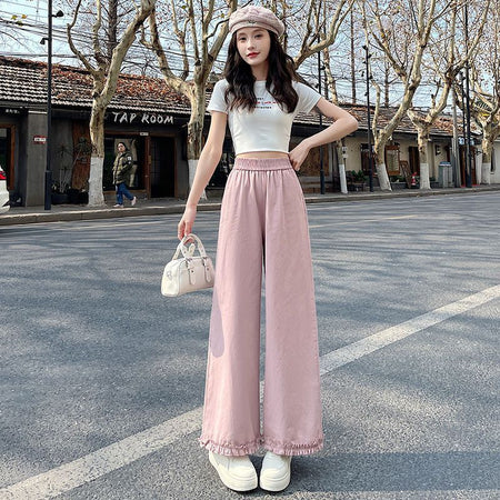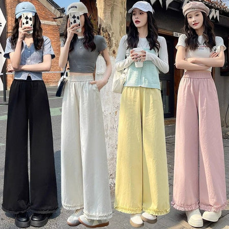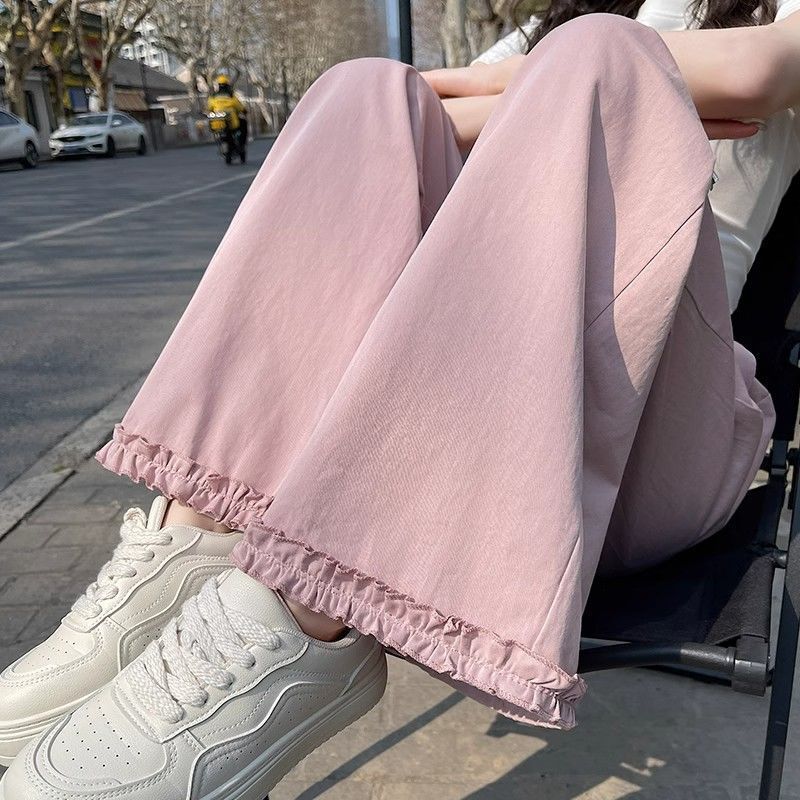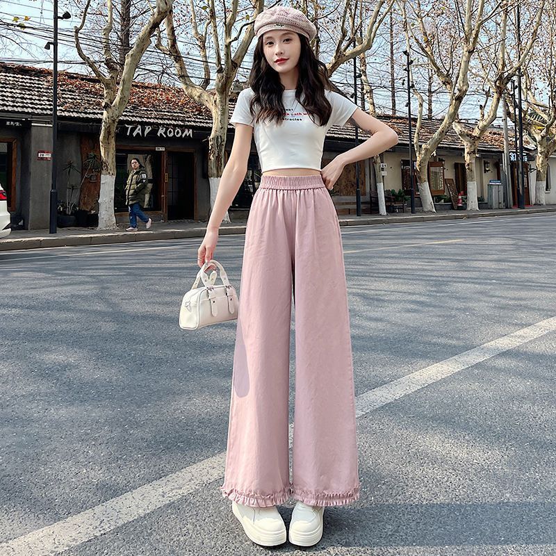 Add a touch of elegance to your summer with these Pink High-End Ruffled Wide-Leg Pants for Women! Designed for comfort and charm, these cropped straight-leg pants feature a soft ruffled waistband that flatters the waistline and brings a playful, feminine vibe. 🌸