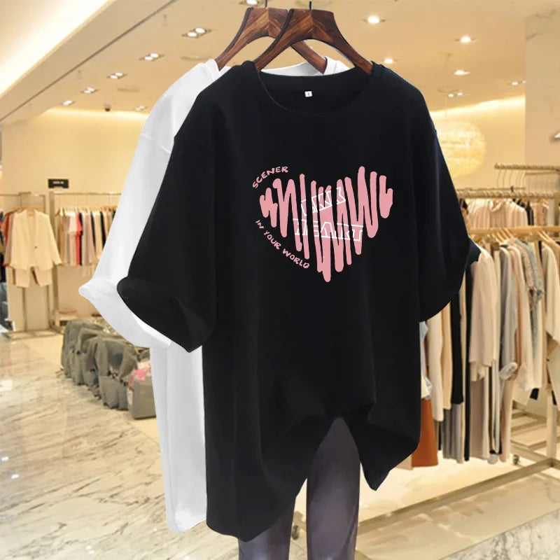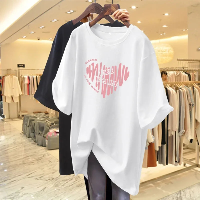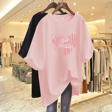 Pink Cotton Loose T-Shirt – Summer Mid-Length Tee