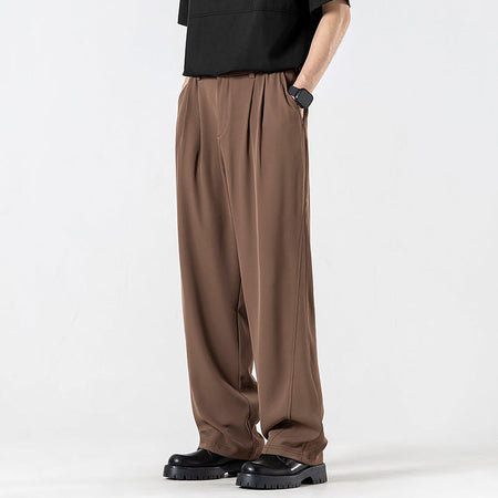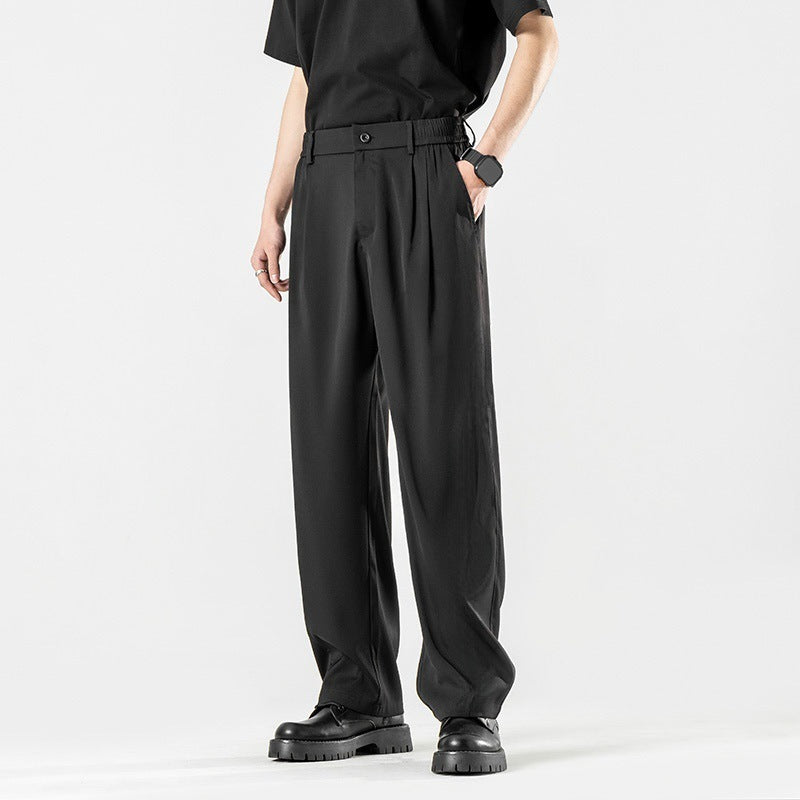 Crafted from premium lightweight fabric, these pants are soft, breathable, and durable, ensuring all-day comfort. The drapey construction adds a smooth flow and enhances the overall silhouette, giving a refined yet relaxed look. The straight-leg design creates a clean, elongated line, making these pants flattering for plus-size men while maintaining a high-end, fashion-forward style.