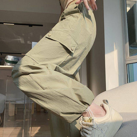 Made from lightweight, quick-dry fabric, these pants keep you cool and comfortable all day long. The elastic waistband ensures a snug but flexible fit, while the large pockets provide practicality for carrying essentials. The loose, straight-leg design adds a relaxed, flattering silhouette suitable for all body types, making these cargo pants a must-have for summer adventures.