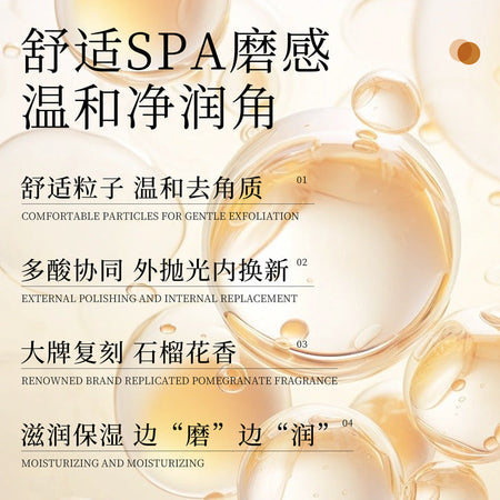 This deep-cleansing massage cream is packed with natural pomegranate extract, known for its antioxidant and brightening properties. It gently exfoliates dead skin, unclogs pores, and helps reduce the appearance of "chicken skin" (keratosis pilaris) on arms, thighs, and other rough areas. šš§āļø