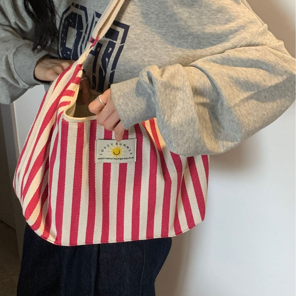 Step into the season with confidence and flair in our Pomelo Summer Hong Kong Style Large Capacity Striped Tote Bag. Designed to capture the essence of summer fashion, this bag offers a spacious interior and timeless striped design.