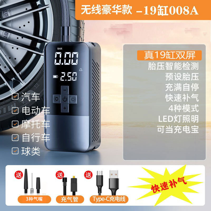 Be ready for any road situation with this Portable Electric Car Air Pump, designed to quickly and efficiently inflate your tires. Powered by a rechargeable lithium battery, this car tire air pump ensures fast, reliable performance without the need for cords. Compact and lightweight, it’s ideal for cars, motorcycles, bicycles, and emergency roadside use. 🚗⚡