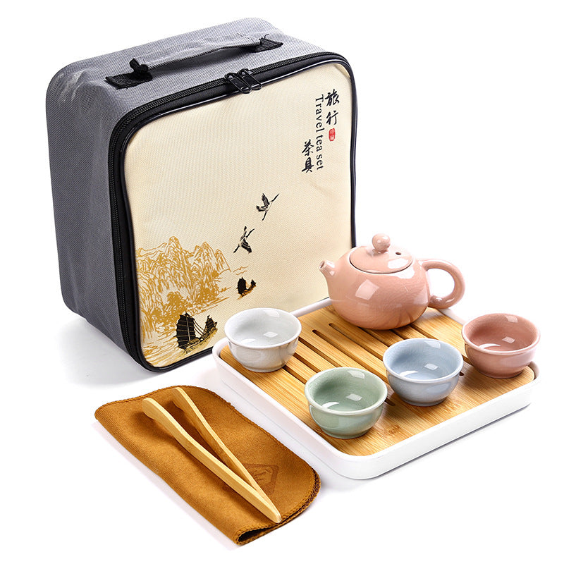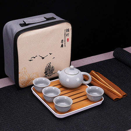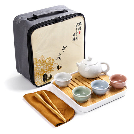 Portable Outdoor Kung Fu Ceramic Tea Set – 1 Pot 4 Cups