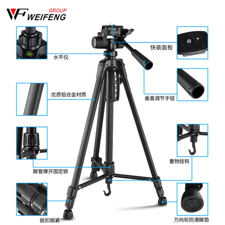 Create professional-quality shots anytime, anywhere with the Weifeng 3520 portable tripod stand. Designed for SLR cameras, mirrorless cameras, and mobile phones, this versatile tripod is perfect for photography, selfies, and live streaming. Its lightweight yet sturdy build makes it ideal for both travel and studio use.