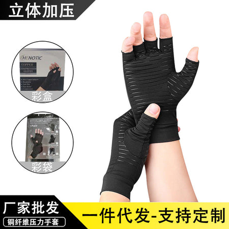 Copper Fiber Fingerless Pressure Gloves β Unisex Touchscreen