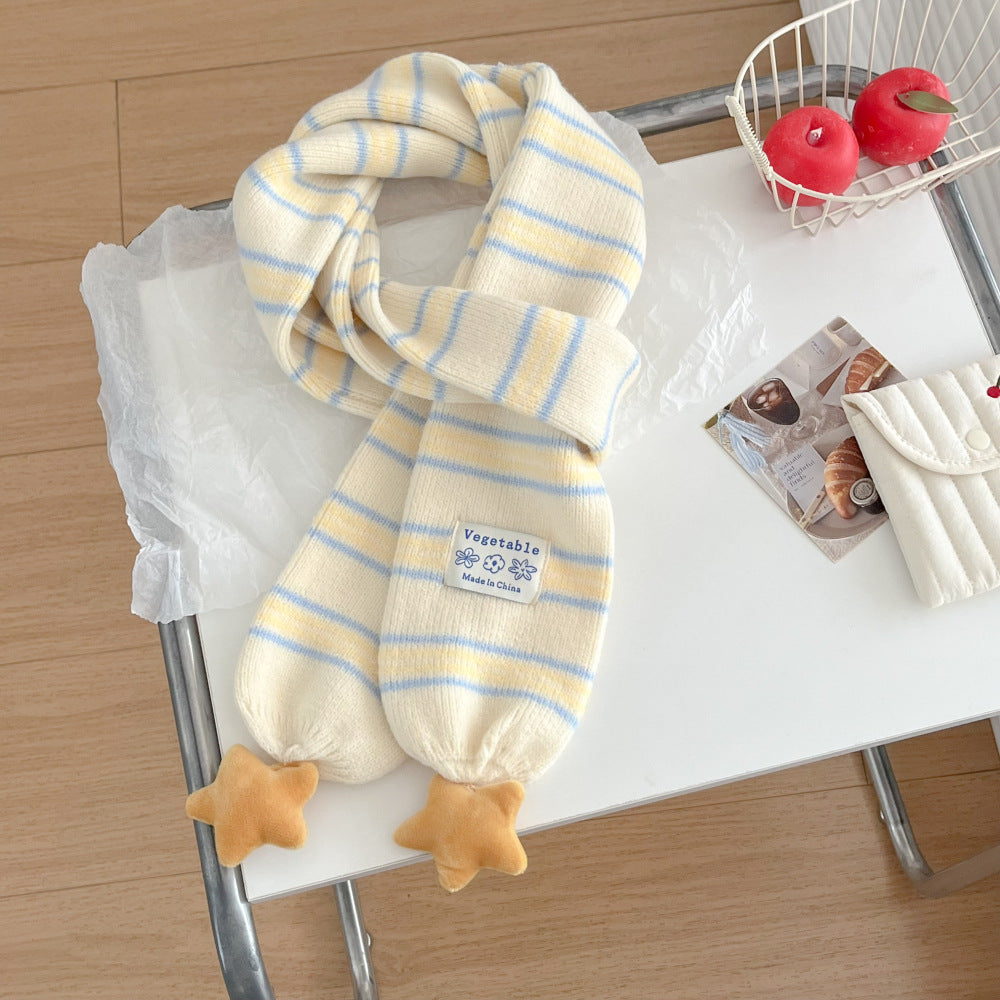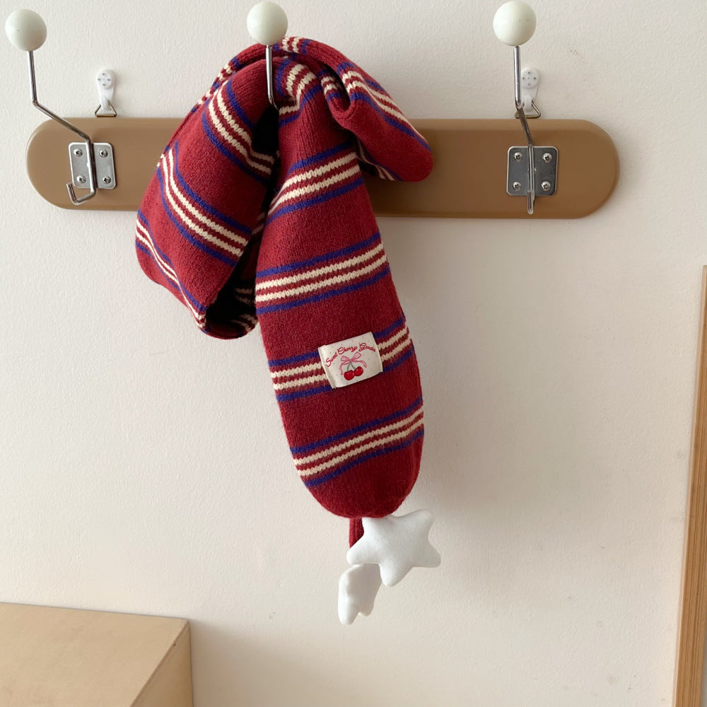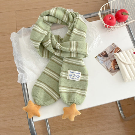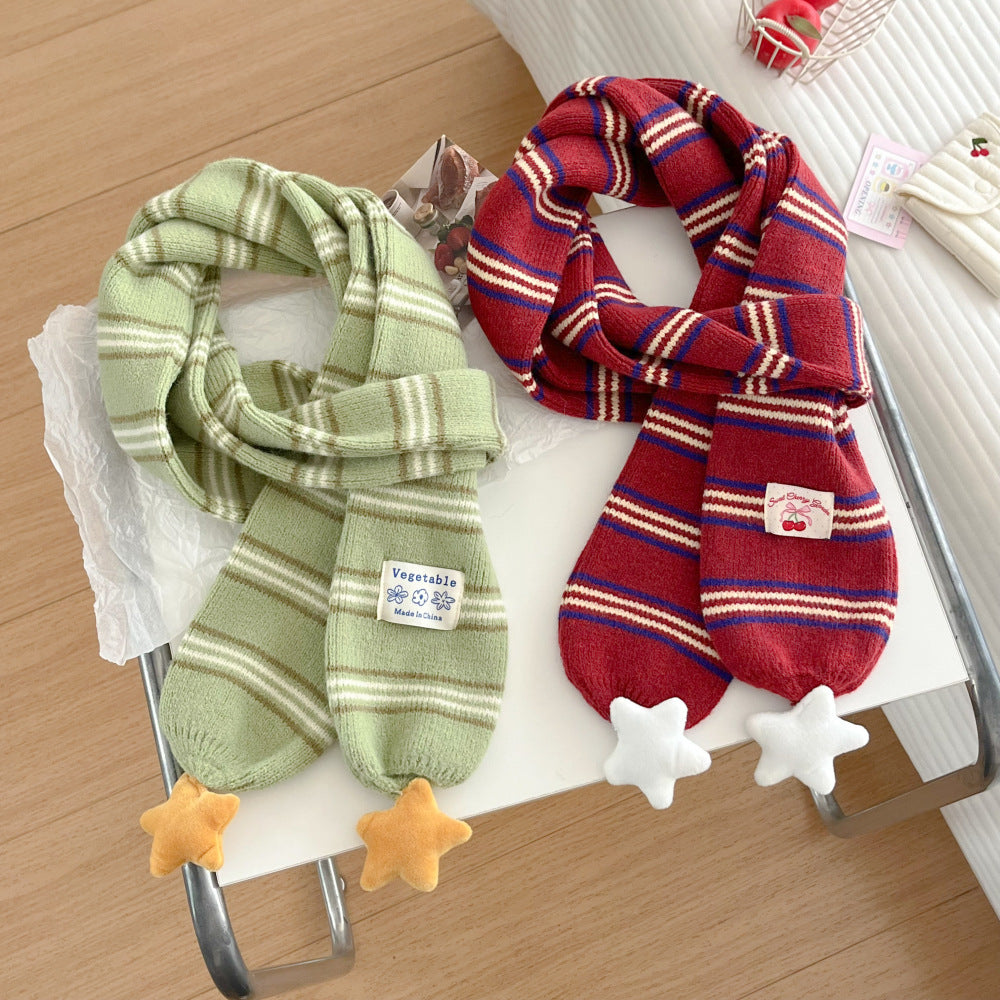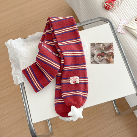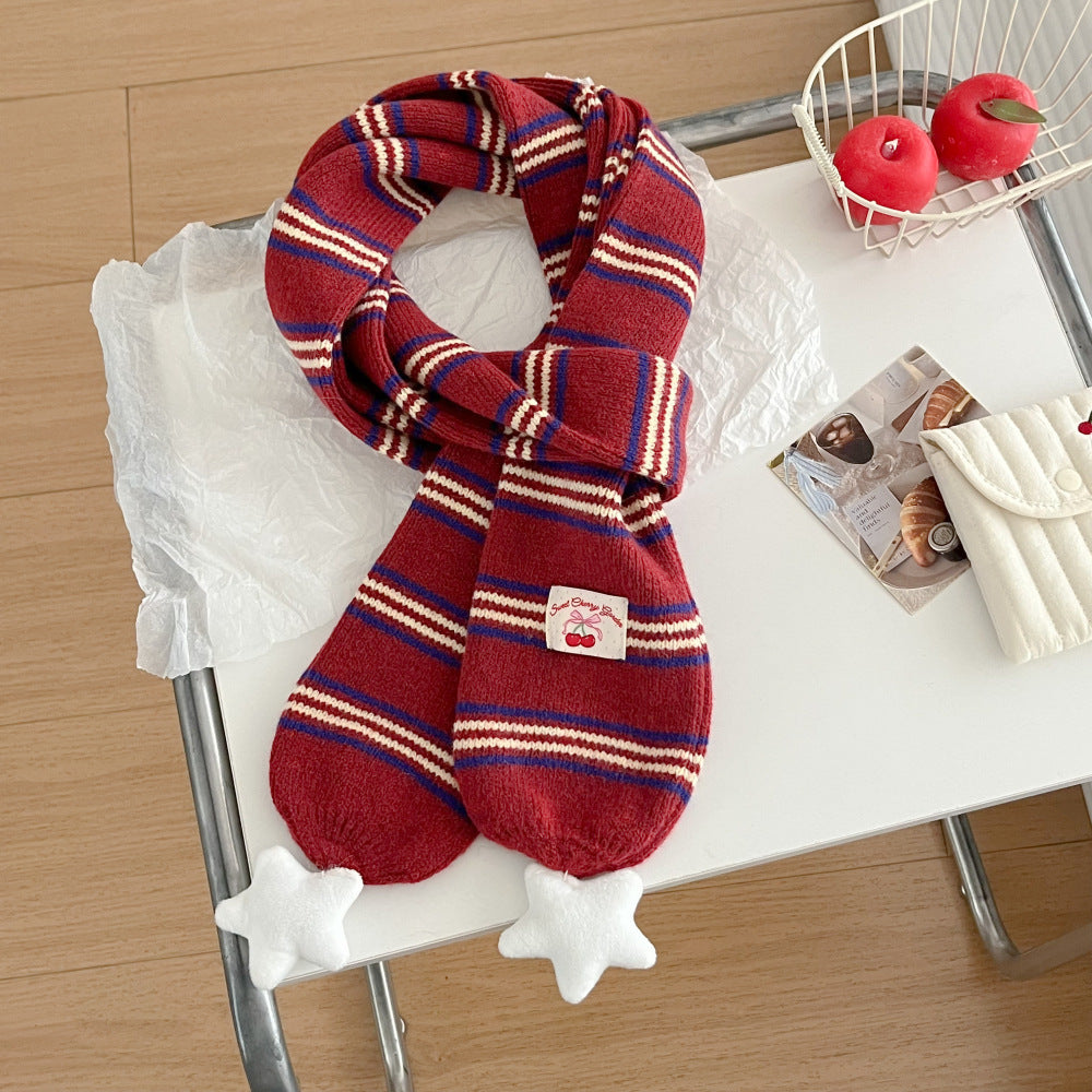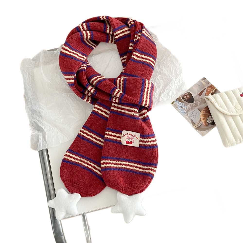 Preppy Korean Striped Star Knitted Warm Scarf Women Neck