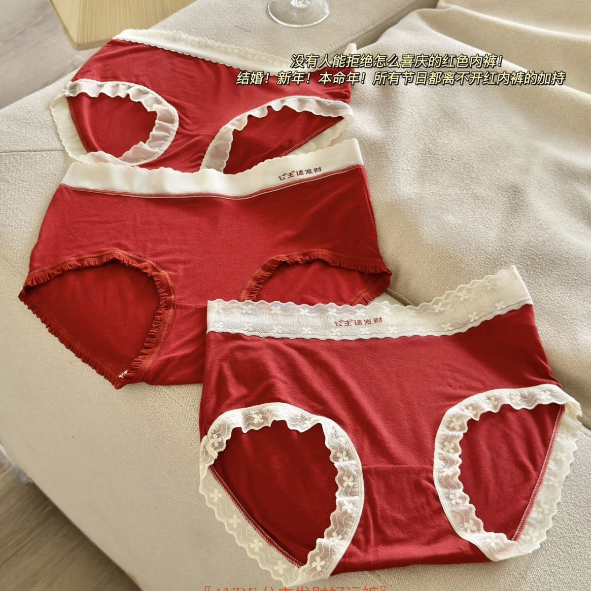 Bring in good fortune with these Princess-style Lucky Red Women's Underwear, specially designed for New Year celebrations, weddings, and auspicious occasions! 🔴🌟 Crafted from soft, breathable cotton, these comfortable red briefs are a symbol of luck, prosperity, and positive energy. 🍀❤️
