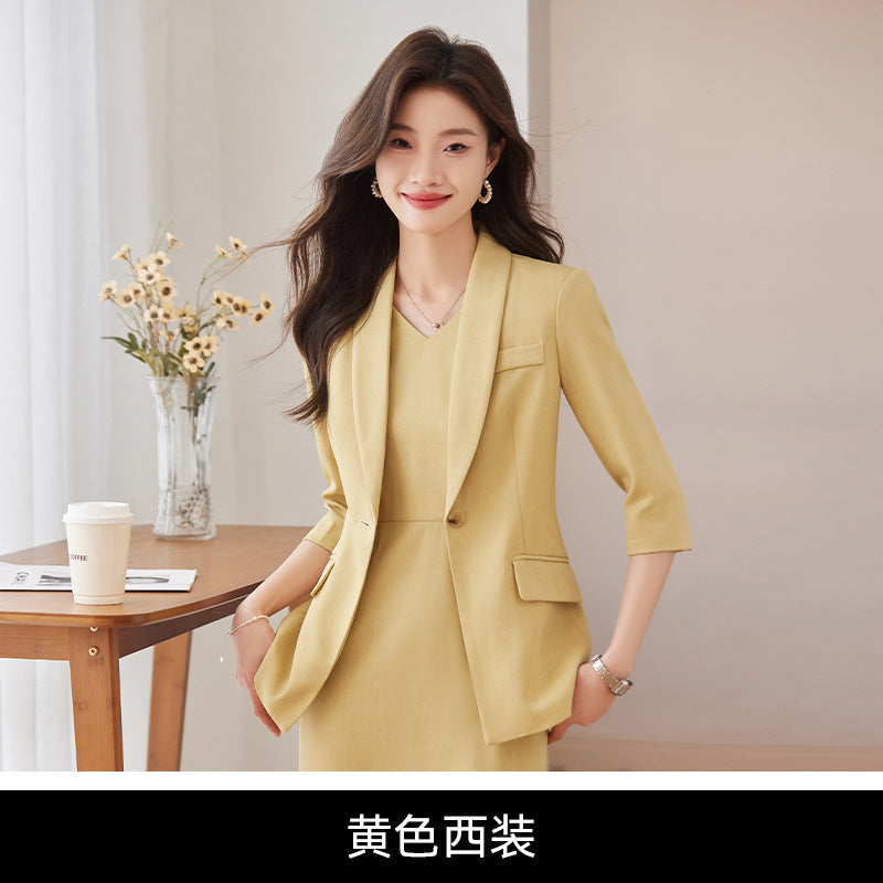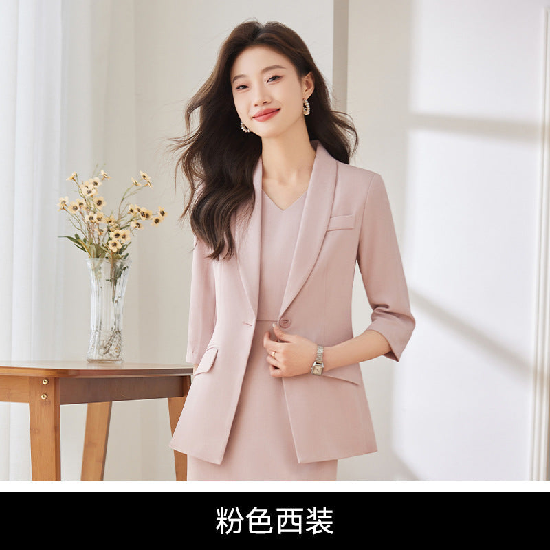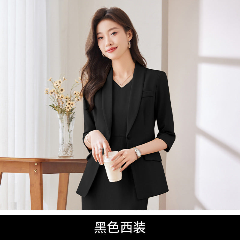 Summer Formal Women’s Suit Dress Two-Piece Set! Designed with elegance and professionalism in mind, this chic outfit is perfect for hosts, front desk staff, or women looking to embody confidence and grace in formal settings. With a flattering seven-sleeve blazer and matching dress, it’s the ultimate blend of style and sophistication. ✨
