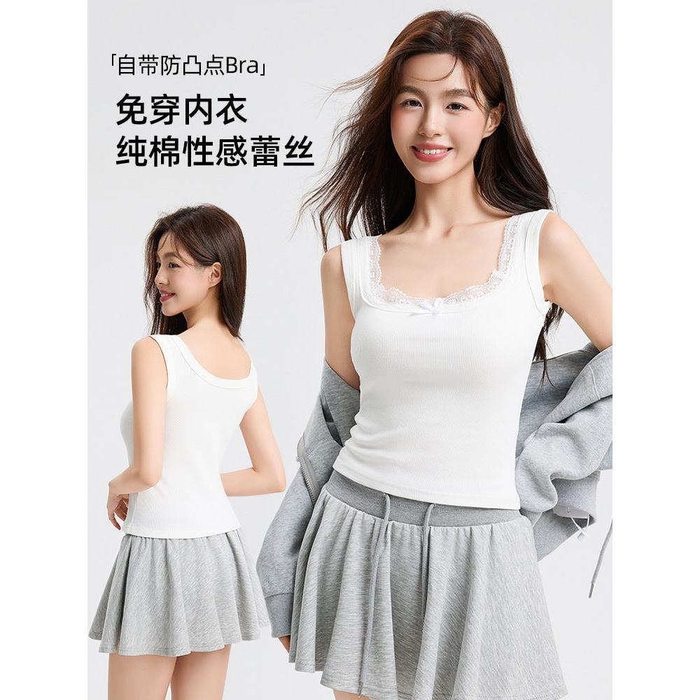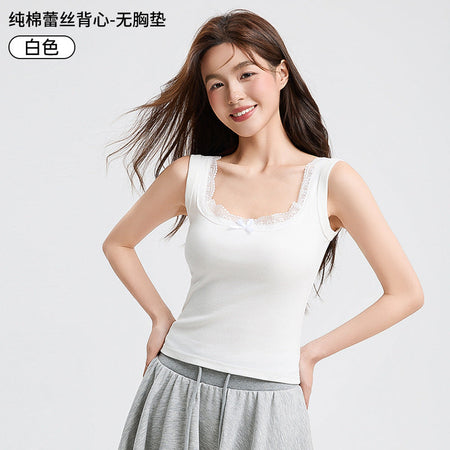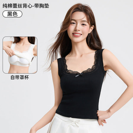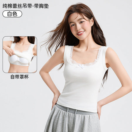 Pure Cotton Camisole with Pads Sleeveless Summer Top