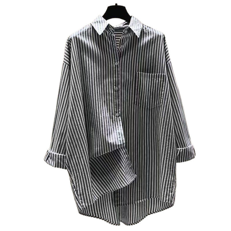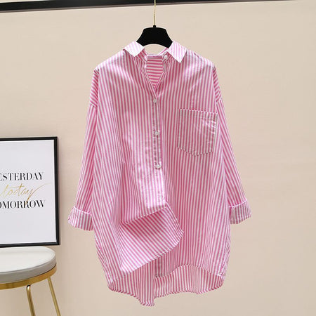 Elevate your wardrobe with this Pure Cotton Hong Kong-Style Loose Striped Shirt — a perfect blend of high-end fashion and casual comfort! 🇭🇰👚 Made from soft, breathable pure cotton, this long-sleeved shirt features classic stripes that never go out of style. 🎨✨