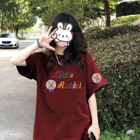 ✅ Key Features: Pure cotton, short sleeves, round neck, printed design, right-shoulder niche style, breathable & comfortable