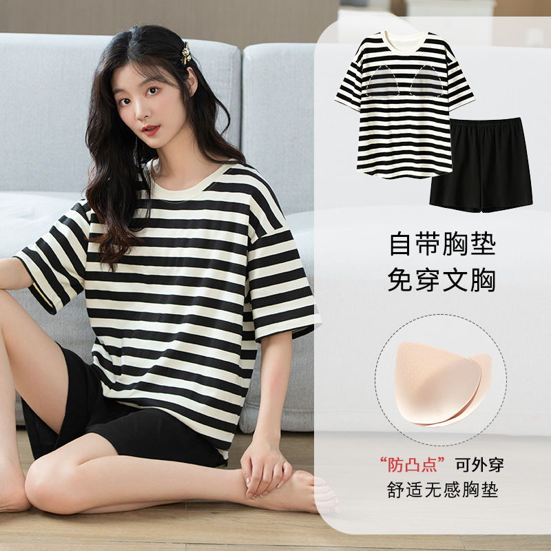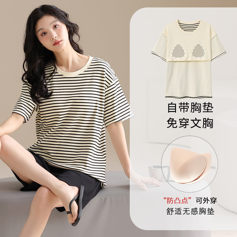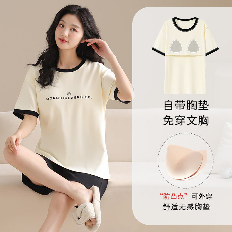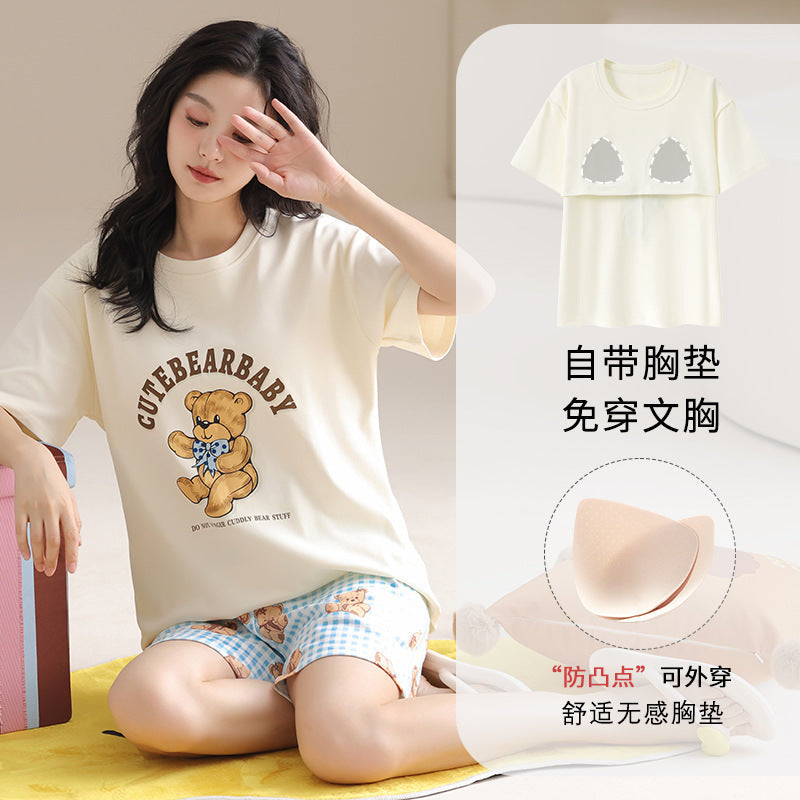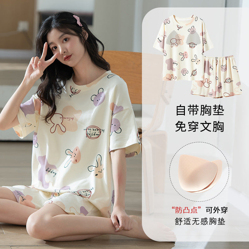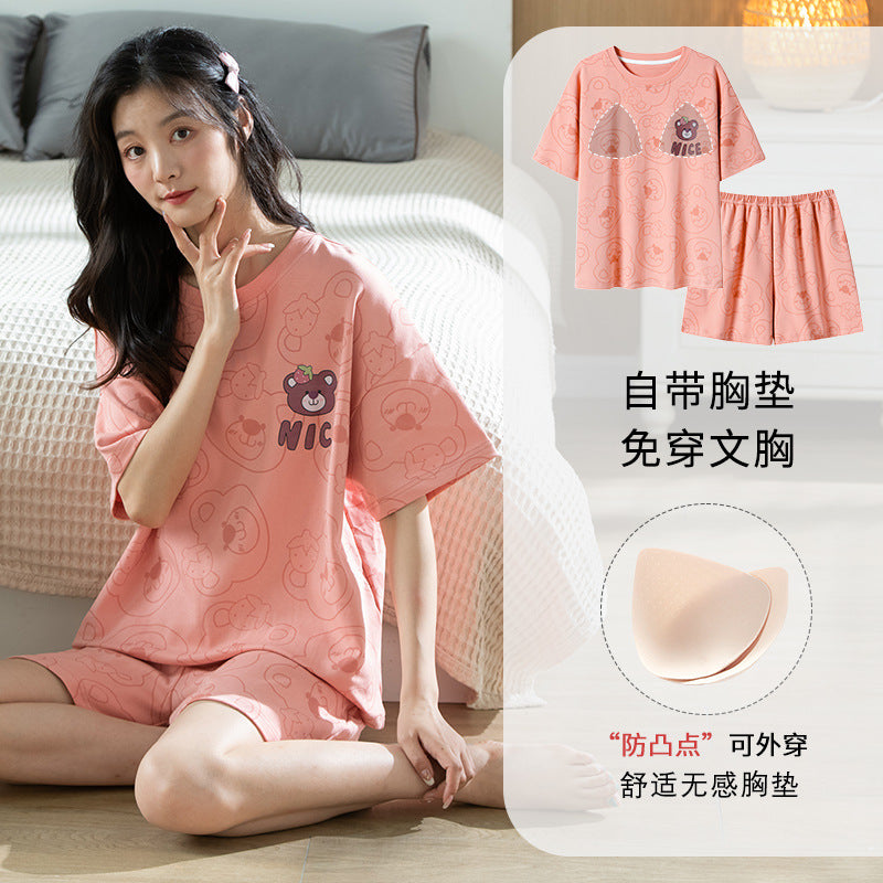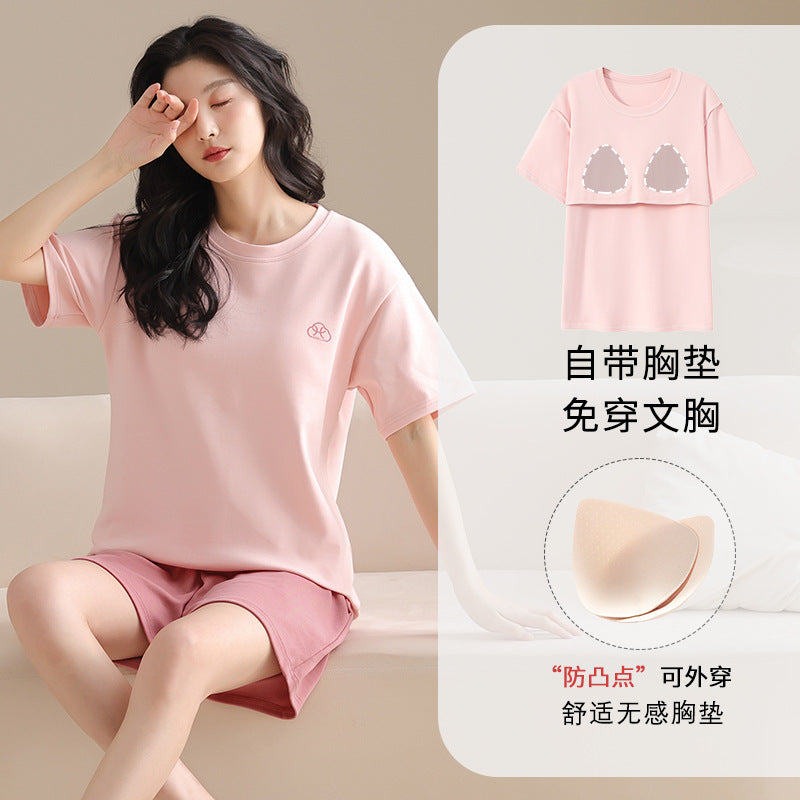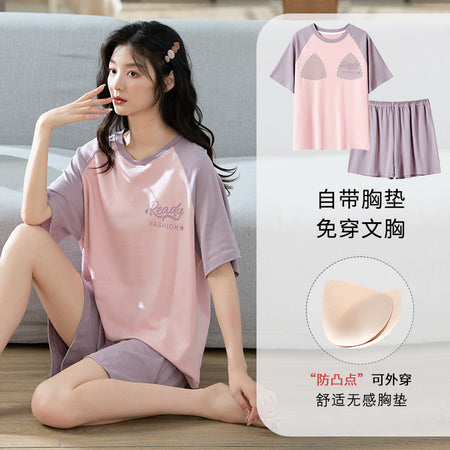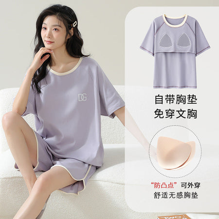 ✨ Stay comfy and confident with our Chest Pad Cotton Pajama Set – no bra needed, just pure cozy freedom for the summer heat! ☁️🛌