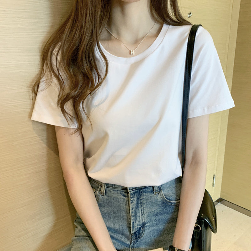 The classic round neck and short sleeves offer a versatile look that pairs effortlessly with jeans, skirts, or shorts. Its loose fit provides a relaxed silhouette, making it suitable for various occasions, from casual outings to relaxed home wear.