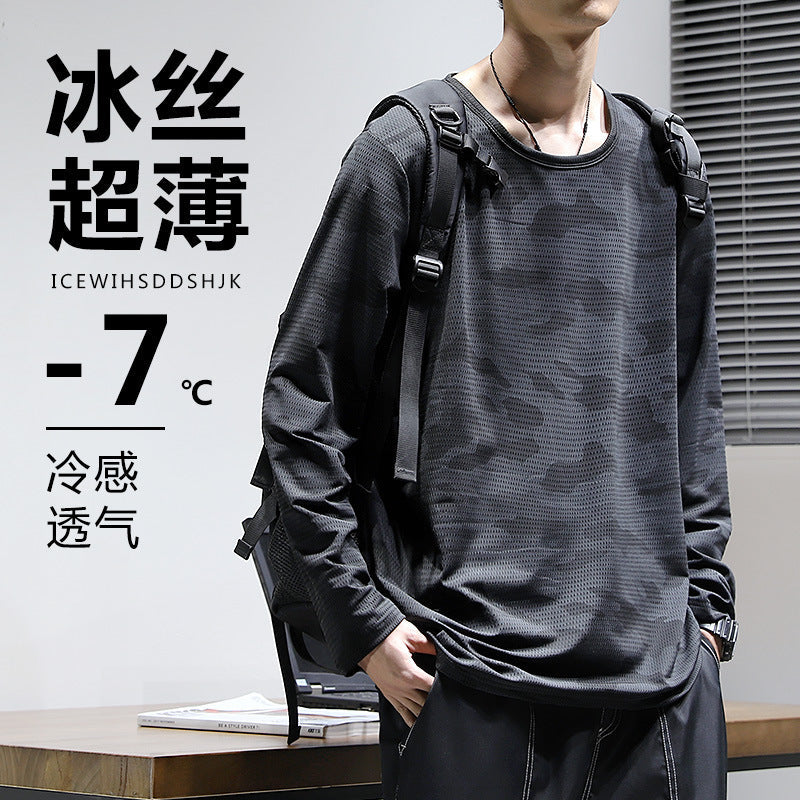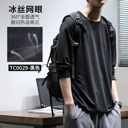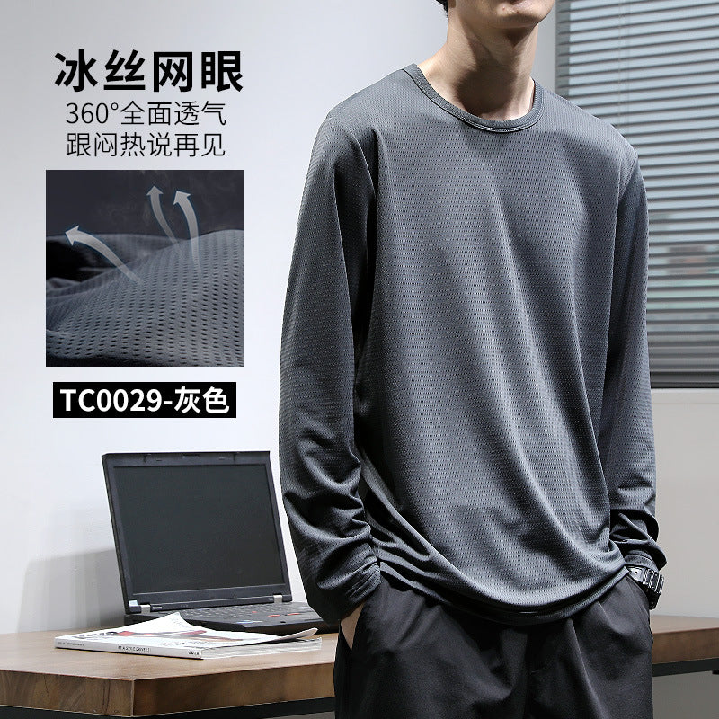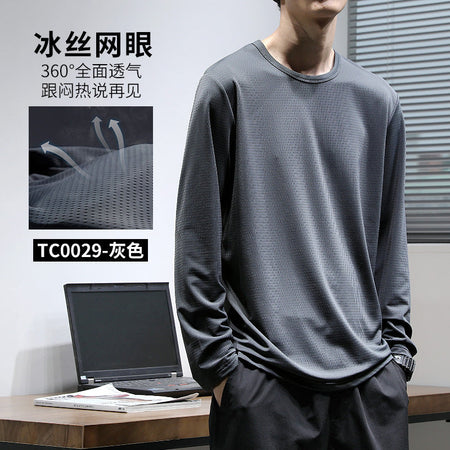 Seamless Men’s Ice Silk Long Sleeve Summer T-Shirt