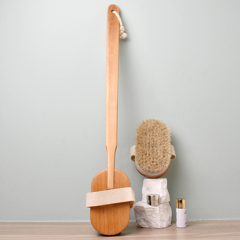 Experience natural exfoliation with this beech wood bath brush featuring removable horsehair bristles ๐ชต๐. The extra-long curved handle ensures you can comfortably reach your back and shoulders without strain. The soft yet firm bristles gently scrub away dead skin while stimulating circulation for a healthy glow ๐ฟโจ.