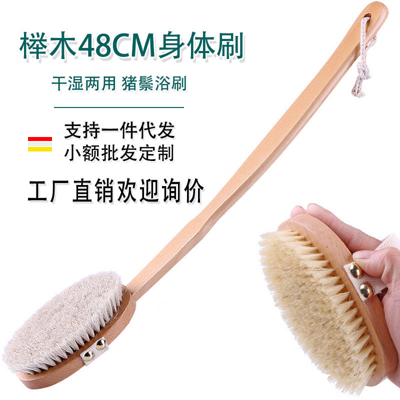 Removable Bristle Beech Wood Bath Brush with Long Handle