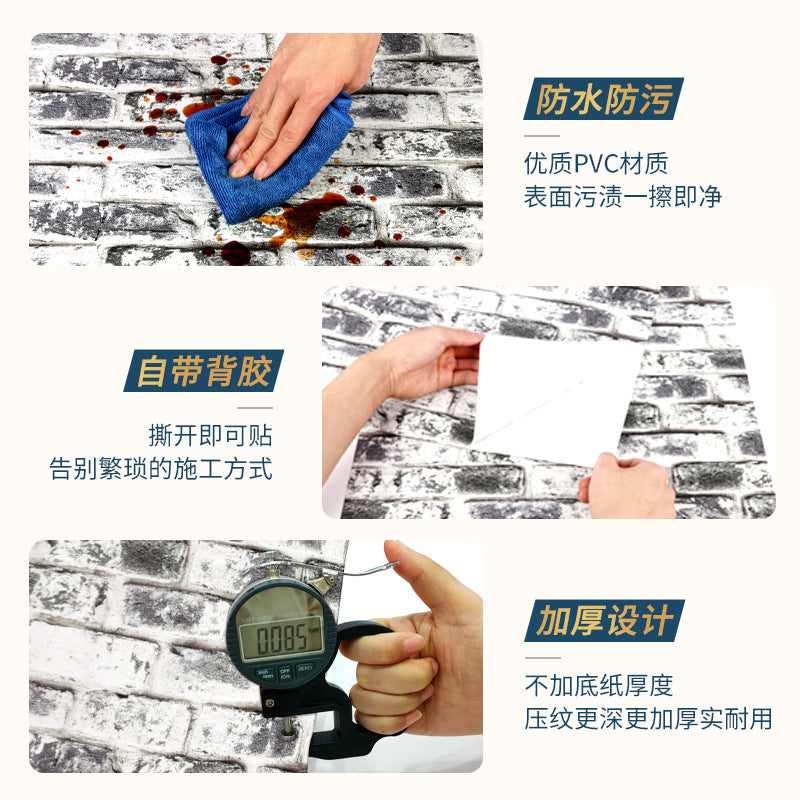 Retro 3D Brick Waterproof Self-Adhesive PVC Wallpaper