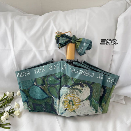 Retro Double Umbrella β Oil Painting Rose Design & Sunscreen