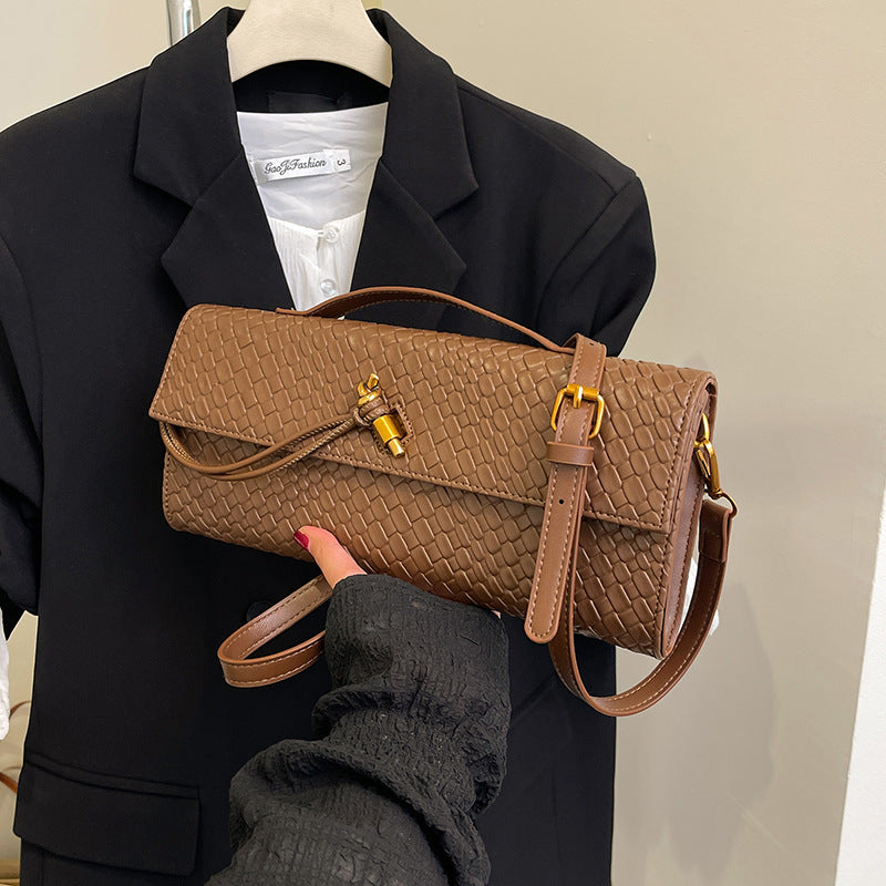 Retro Woven Soft Leather Baguette Shoulder Crossbody Bag Women
