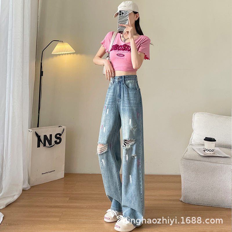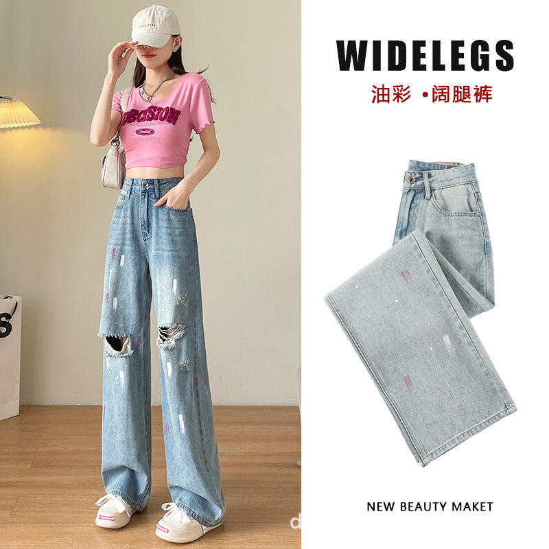 Make a statement this summer with our Womenβs Ripped Graffiti Oil-Design Wide-Leg Jeans β where edgy meets artistic π₯π. These high-waist jeans feature bold paint-splatter graffiti prints and stylish ripped details that bring serious streetwear vibes to your wardrobe π¨ποΈ.