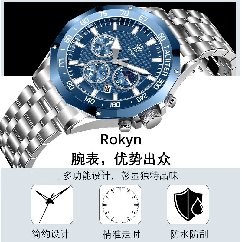 Rokyn Men’s Multi-Functional Waterproof Steel Watch