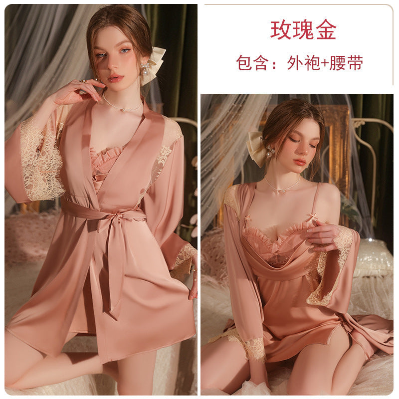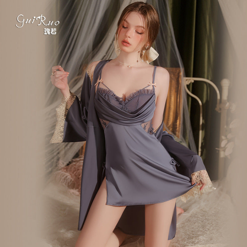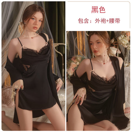 Nightgown & Lace Robe Set! πΉβ¨ Crafted from smooth satin with delicate lace detailing, this pure perspective design features a seductive split sling silhouette that beautifully flatters your figure.