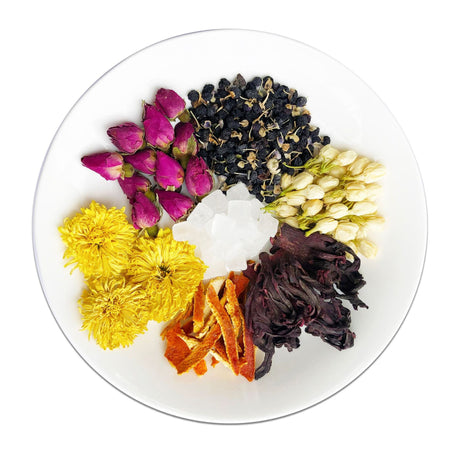 Floral & Herbal Blend: Rose Luoshen, chrysanthemum, jasmine, and black medlar flowers
