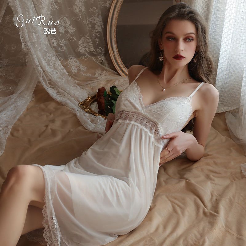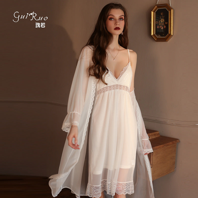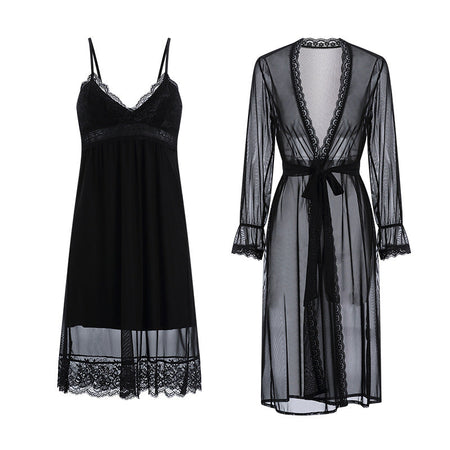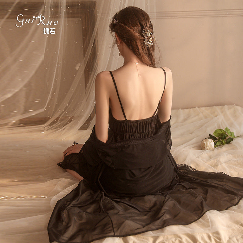 Ruoruo Mesh Strap Nightdress & Robe Set