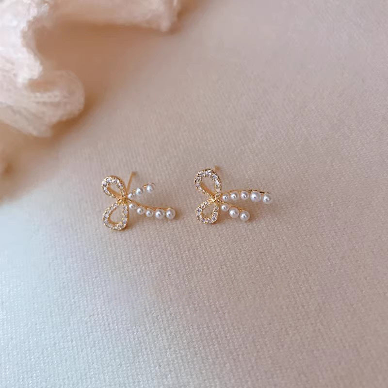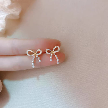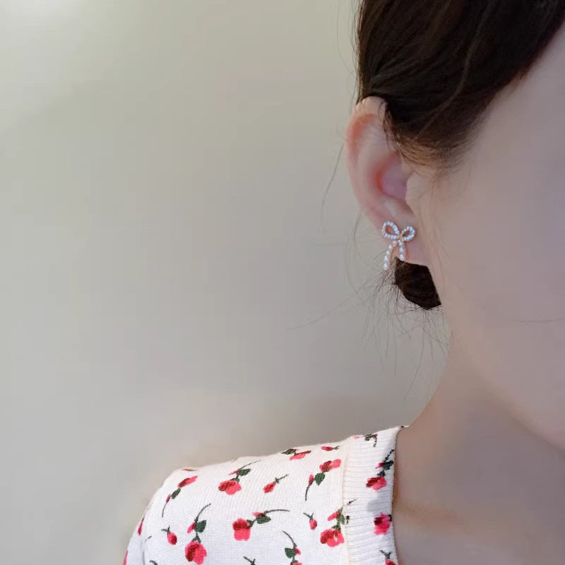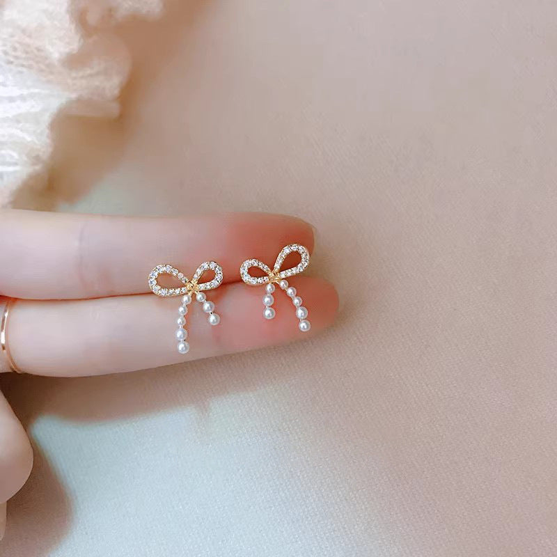 Pearl Bow S925 Silver Pin Earrings – Cute Women’s Accessory