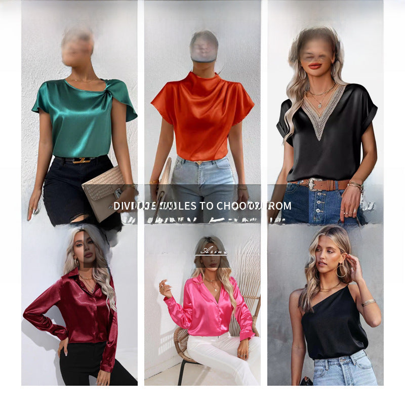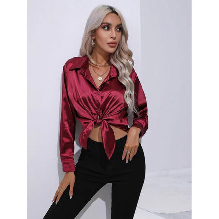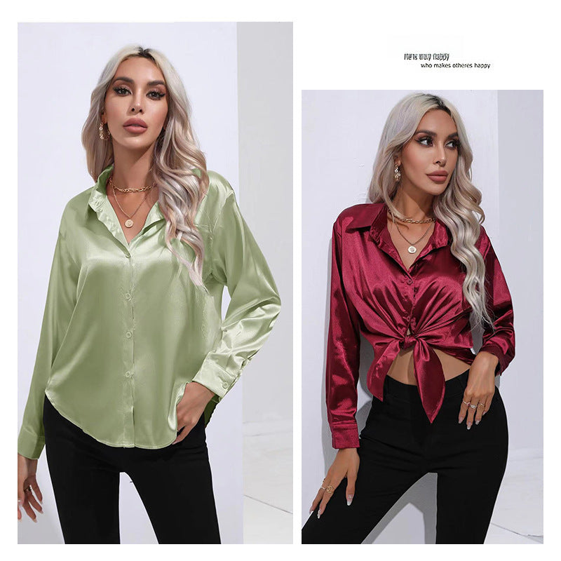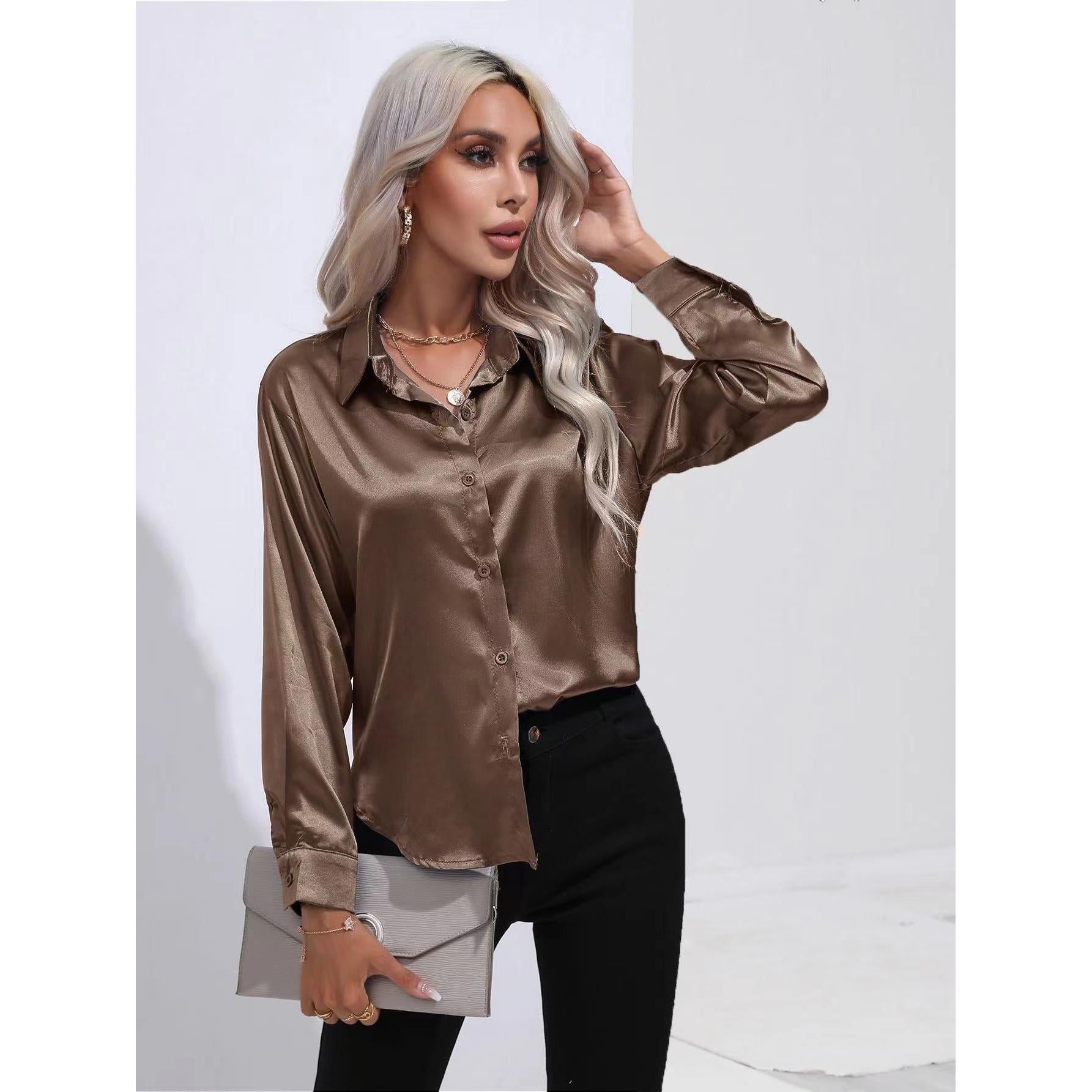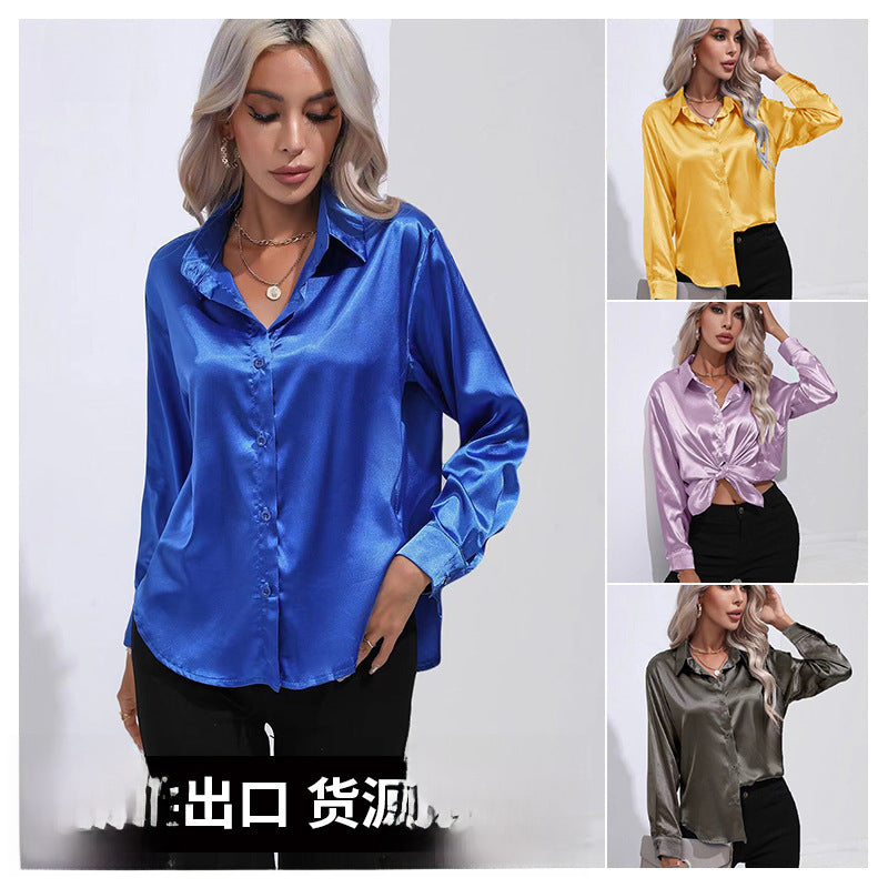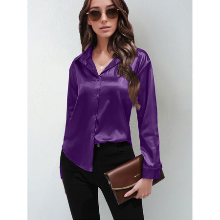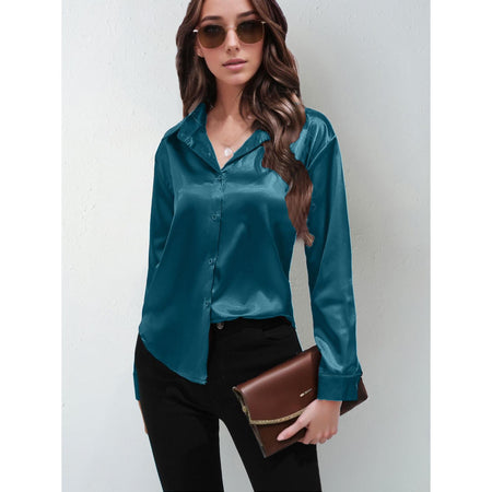 Women’s Satin Imitation Silk Long Sleeve Shirt Elegant Top