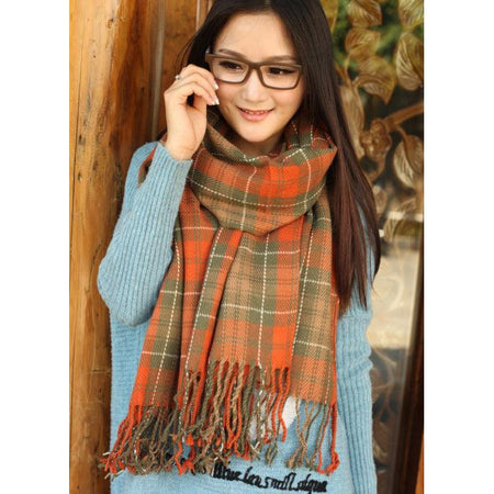 Crafted with a thickened knit, the scarf provides excellent warmth during cold autumn and winter days. The plaid pattern adds a classic touch, while the tassels bring a trendy flair to your outfit. Its dual-purpose design allows you to wear it as a shawl or wrap, adapting easily to different looks and needs.