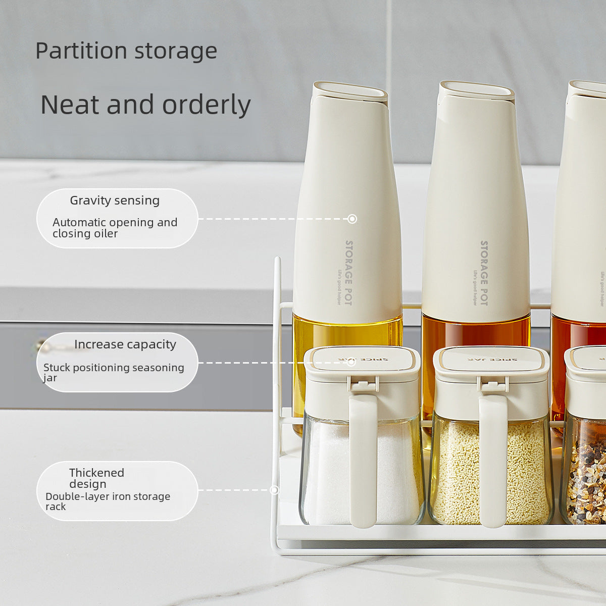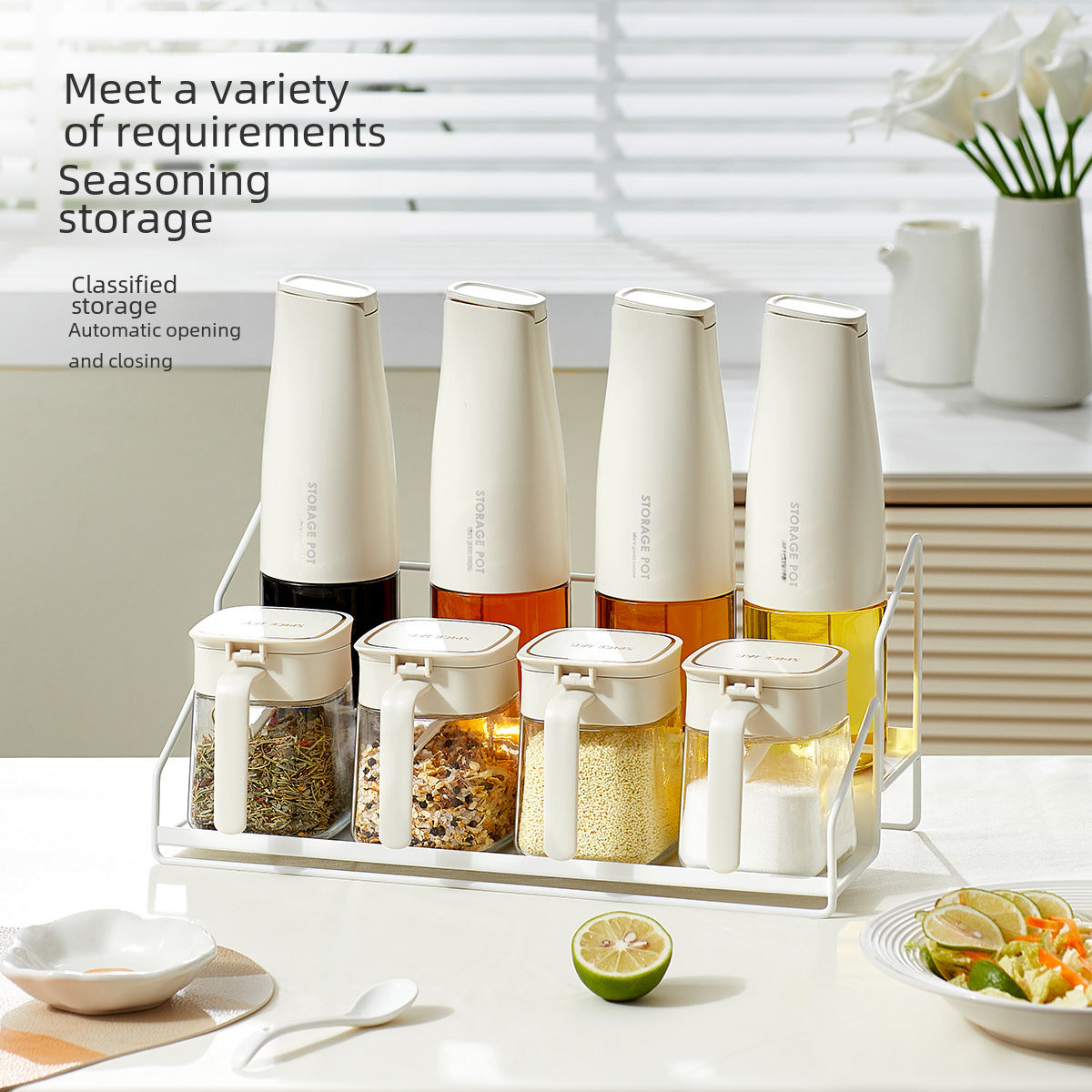Designed for modern kitchens, it fits perfectly on countertops, cabinets, or dining tables. The transparent jars make it easy to spot contents, and the sleek rack adds a touch of sophistication to your cooking space. β¨π