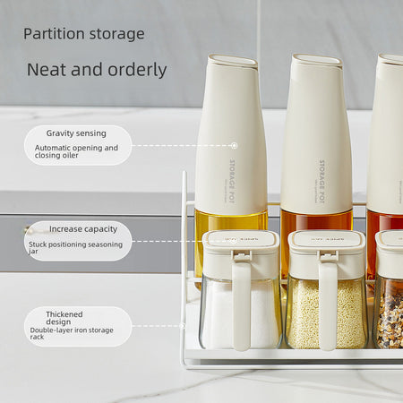 Glass Spice Jar Rack Set β Metal Kitchen Shelf with Oil Dispenser