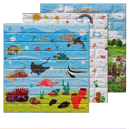 3D Anti-Collision Cartoon Wallpaper – Kids’ Room Decor