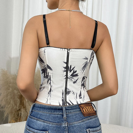 Crafted with a chest-wrapping tube design and a sleek back L-zipper closure, this top combines functionality with seductive flair. The vintage-inspired all-over print adds personality and visual interest, while the sling-style straps offer a lifted, confident neckline β perfect for warm-weather layering or statement solo wear π.