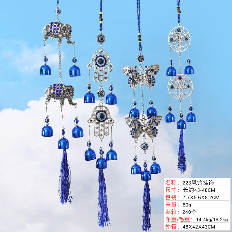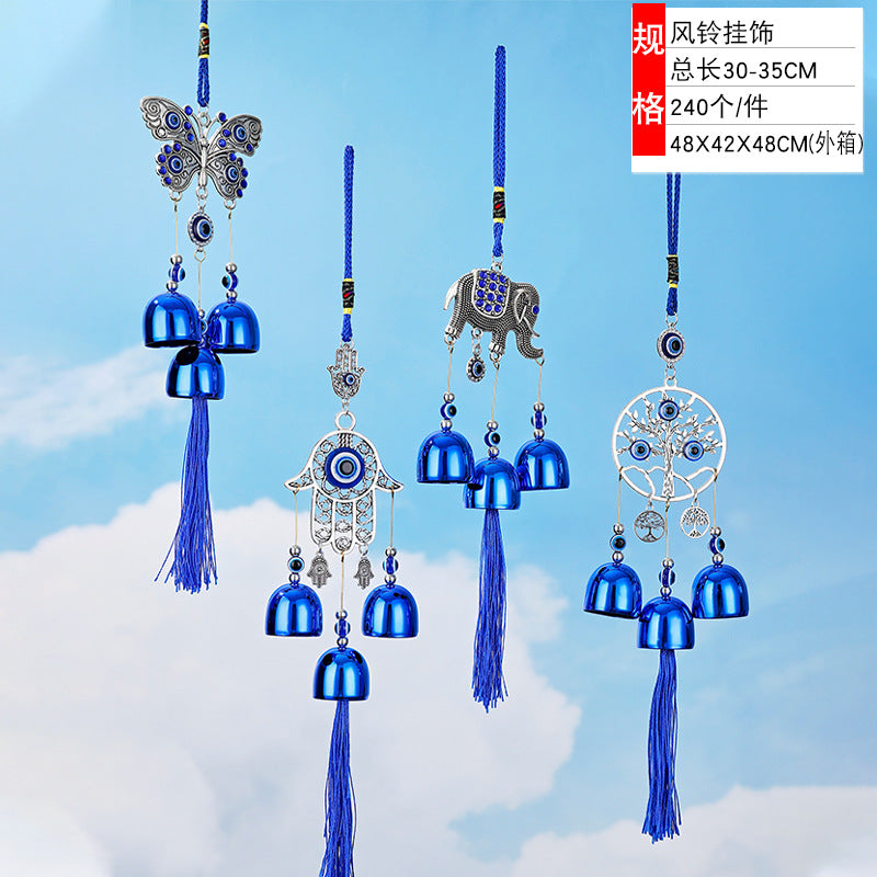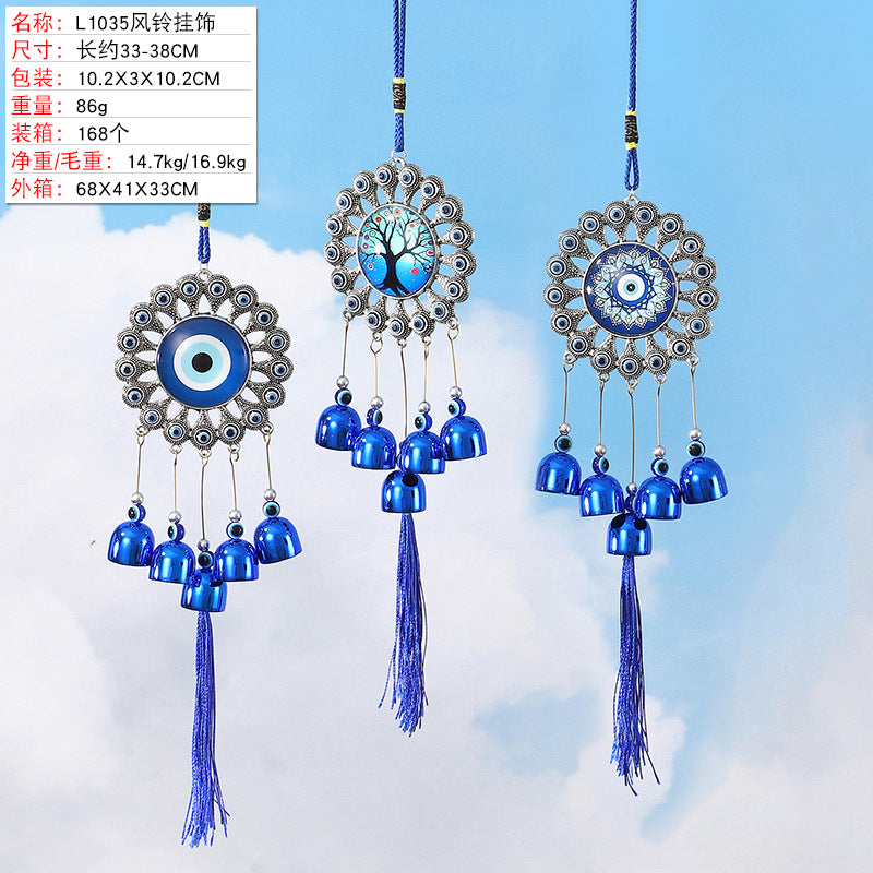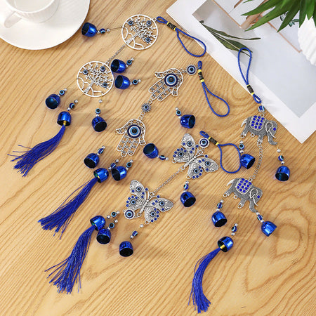 Antique Tassel Metal Bell with Evil Eye Pendant