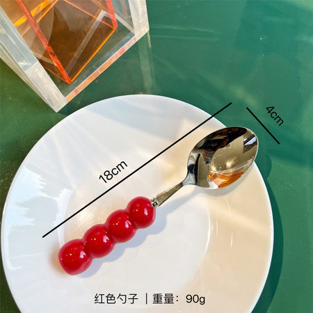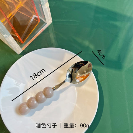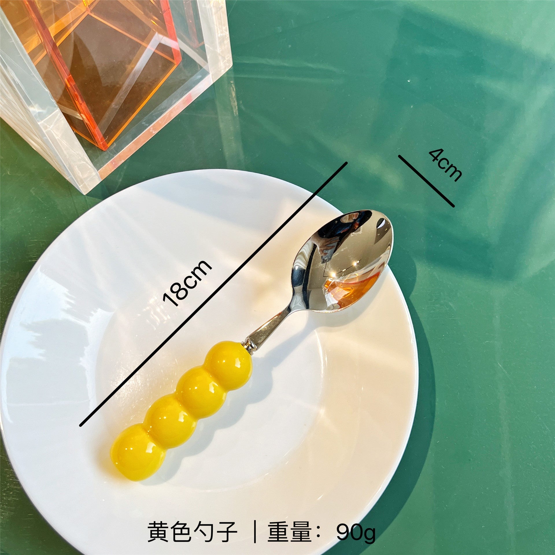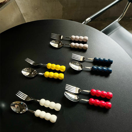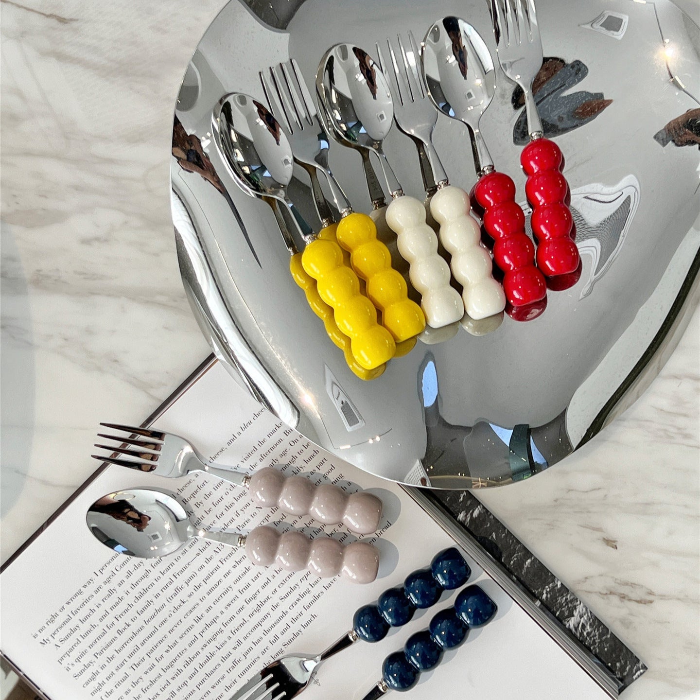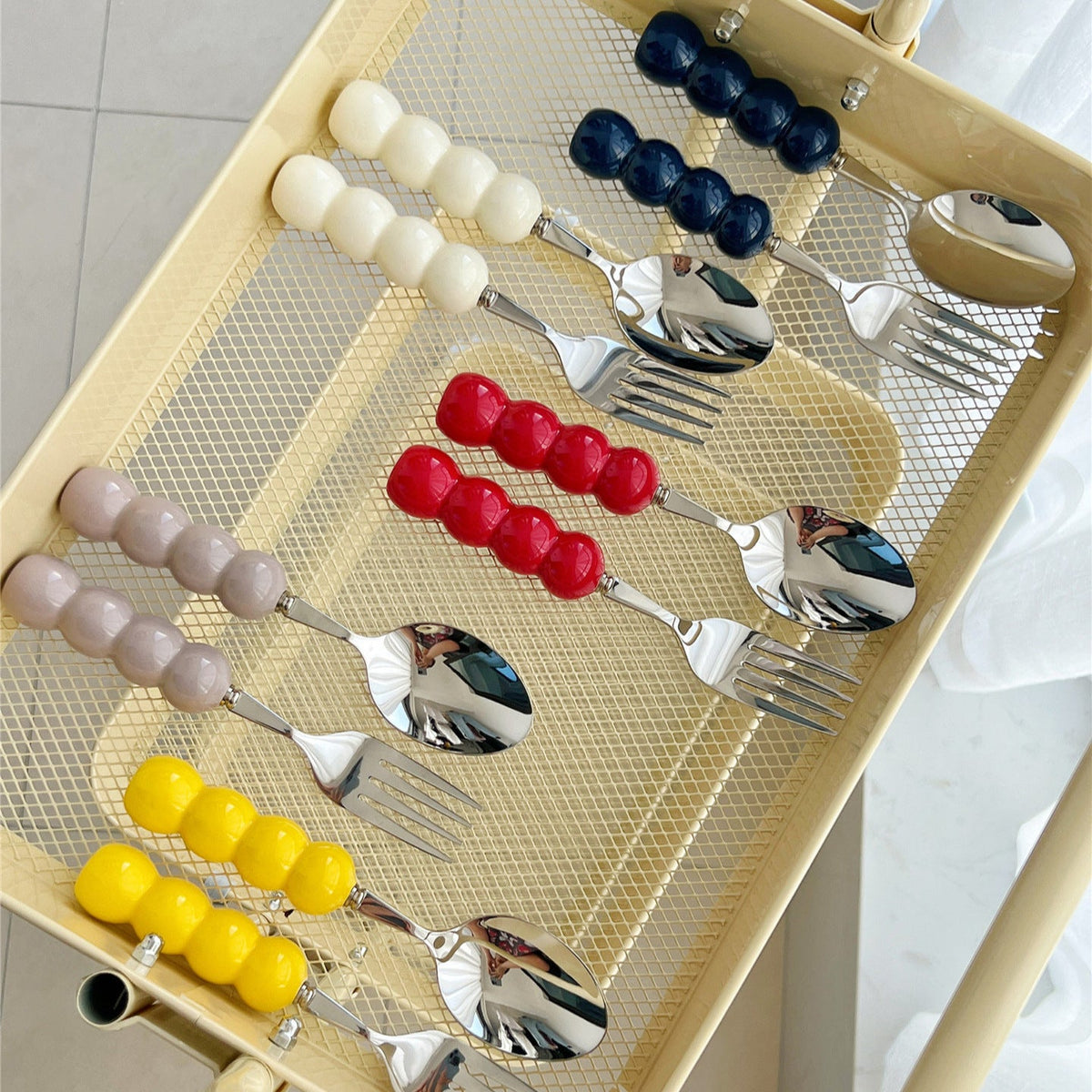 Cute Sugar Gourd Fork & Spoon Set β 304 Steel with Ceramic Handle