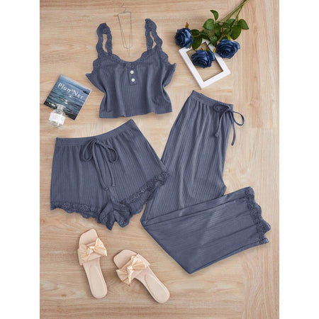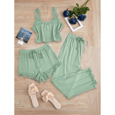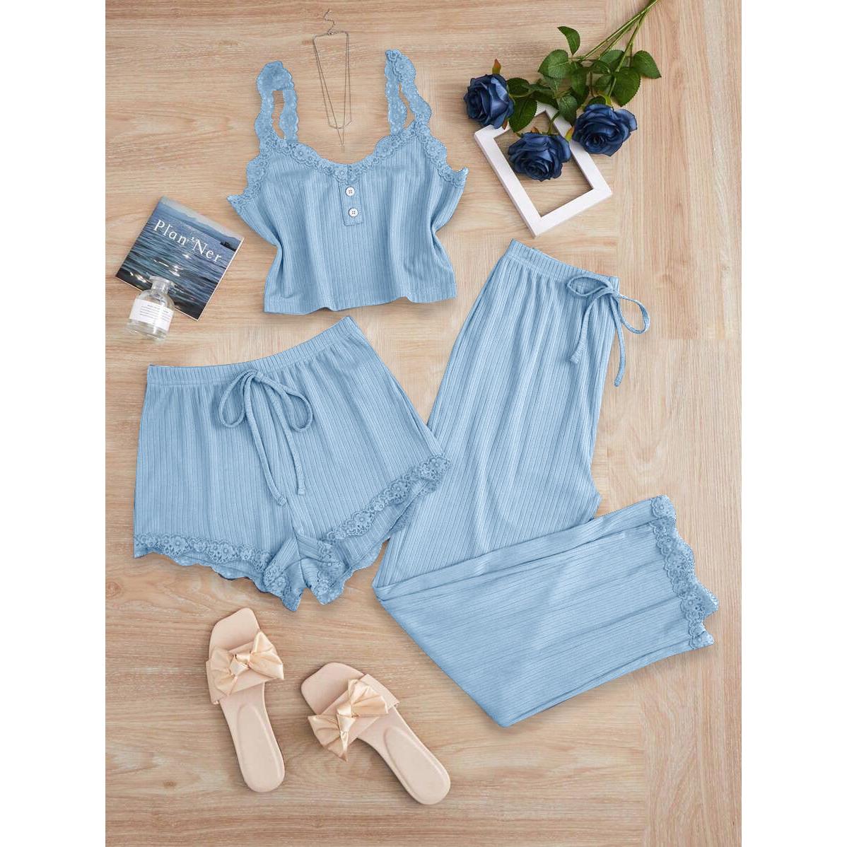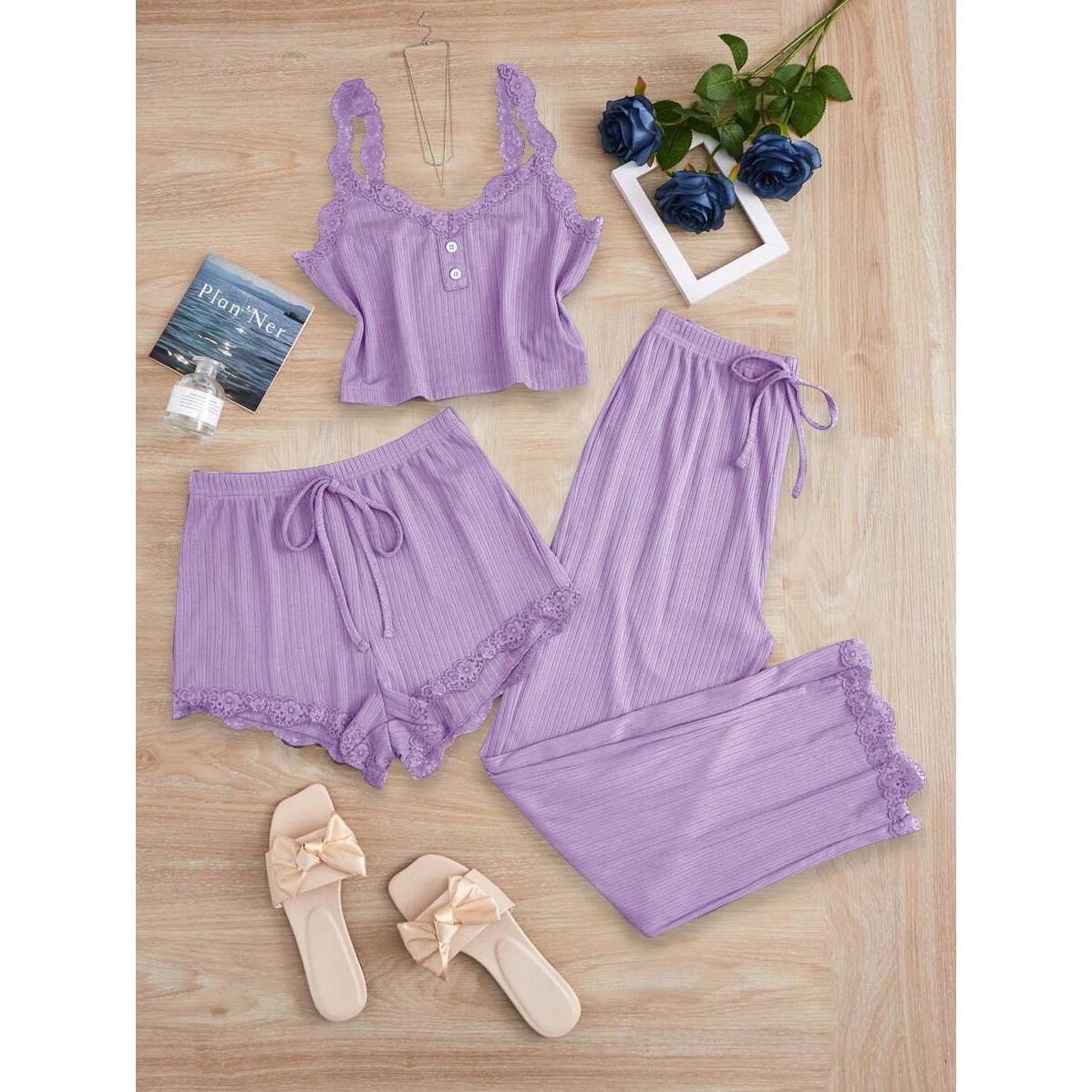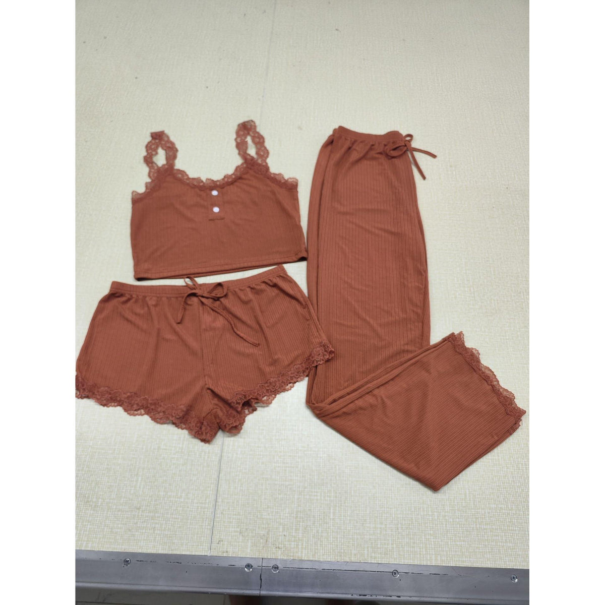 Sleep in style & comfort with this best-selling European & American-inspired 3-piece lace trim nightwear set for women! Featuring a high-elastic camisole, matching shorts, and a chic outer layer – this set is your go-to for feeling elegant at home. 🌙✨