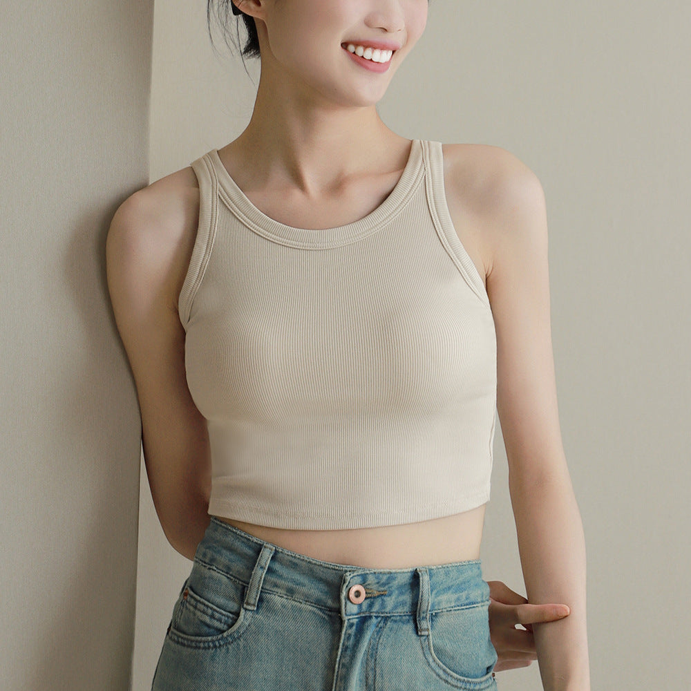 🧡 Stay cool, supported, and stylish with the Zhige Wear-Free Inner Vest. Designed for women on the go, this round-neck camisole is fitted with a comfy chest pad for worry-free wear.