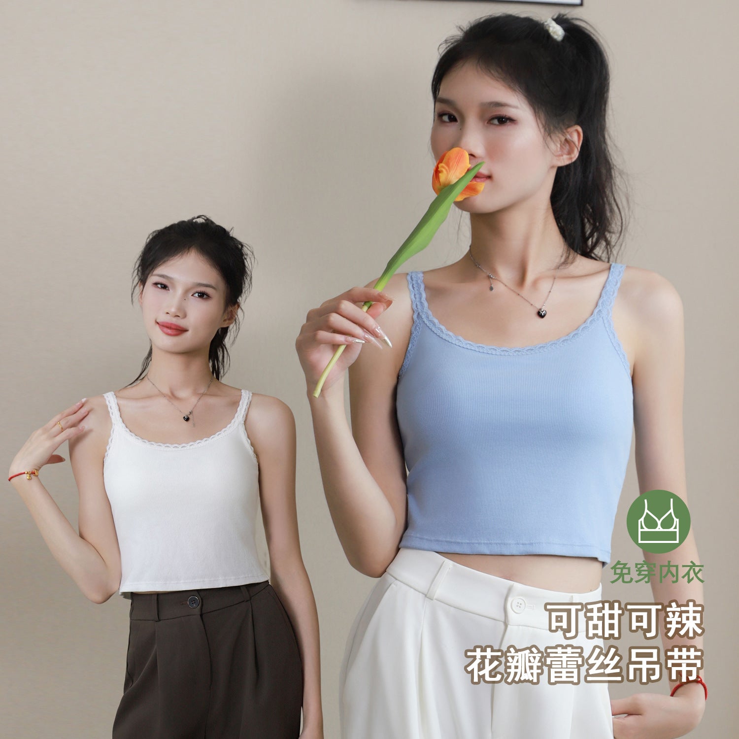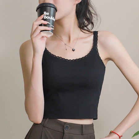 π§Έ Adorably girly meets comfy chic with this Zhiqu Lace Sling Bra Top! A sweet Korean-style camisole with lace details and a built-in bra β no wires, no worries.
