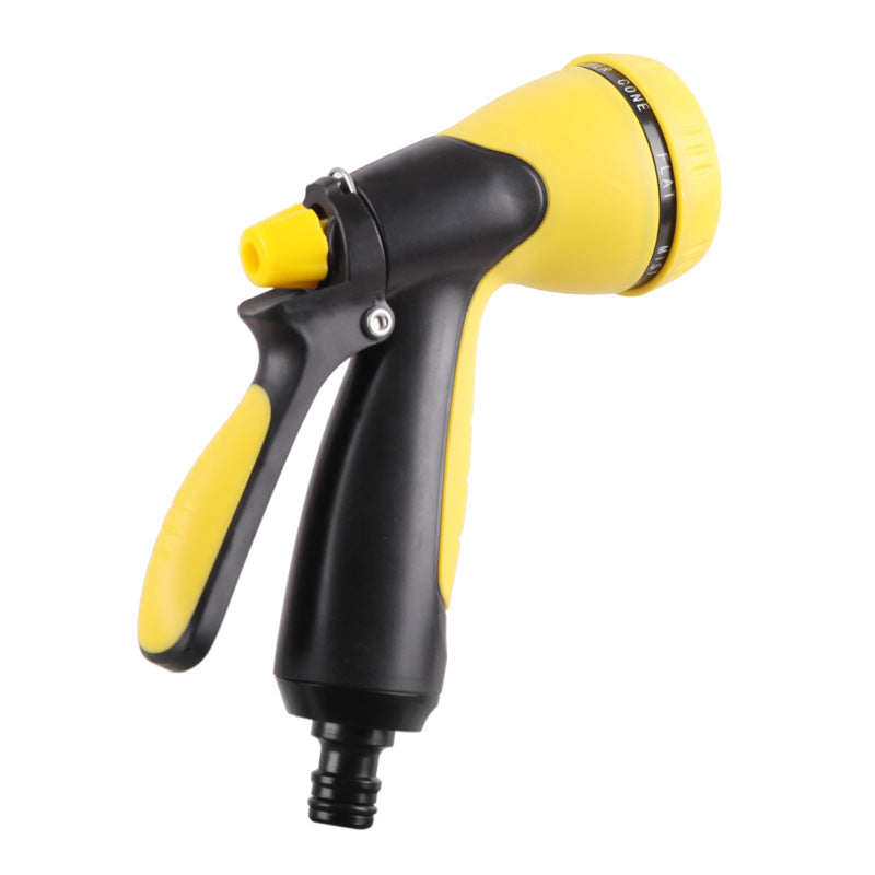 Enjoy versatile watering with this Shixia water gun nozzle, featuring 8 spray modes including mist, cone, jet, and shower. Made for both gardening and cleaning tasks.