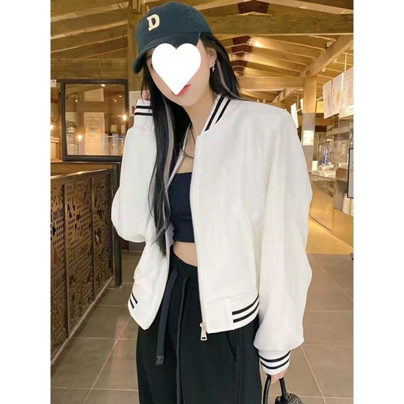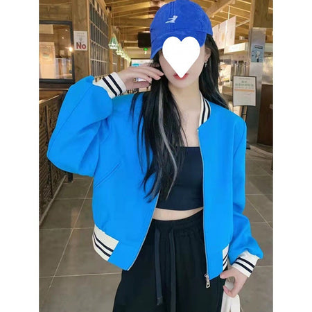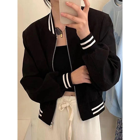 Short Baseball Suit Jacket for Women 🧥🍂. Designed with a Korean-inspired loose fit, this versatile jacket combines casual comfort, sporty vibes, and fashion-forward design, perfect for everyday wear.