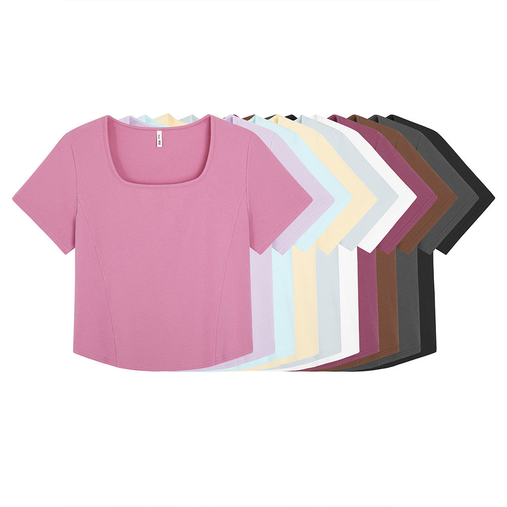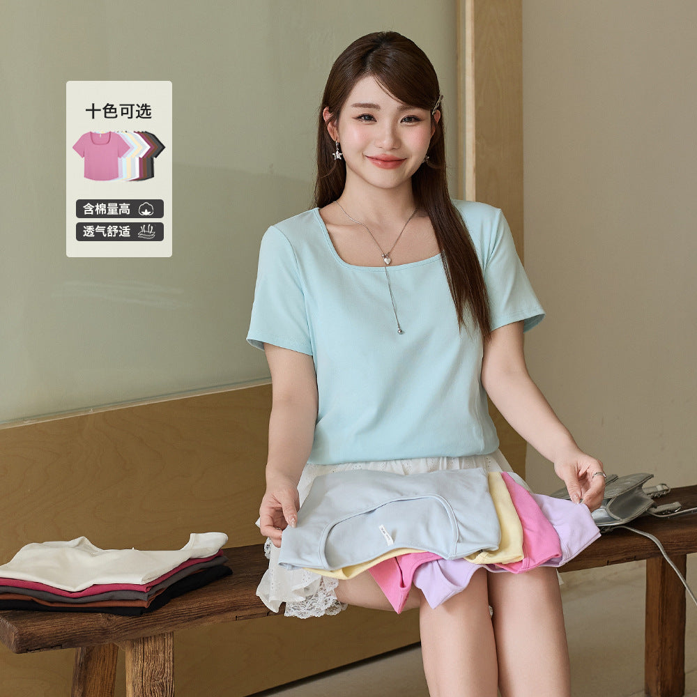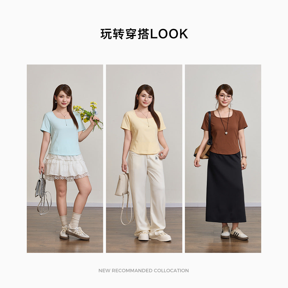 Waist Slimming Plus Size Square Collar T-shirt – 65283