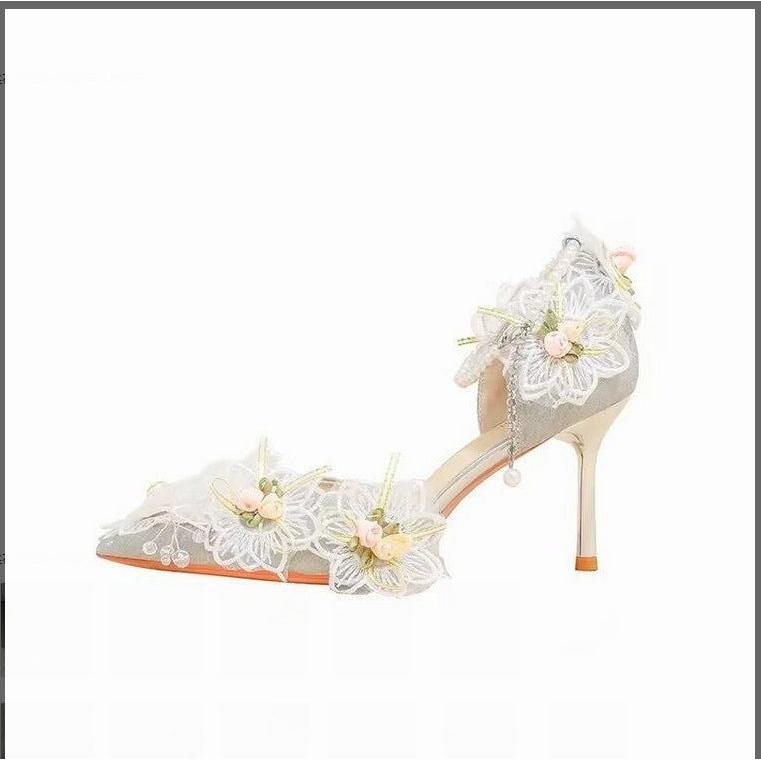 Featuring a chic pointed toe and a side-hollow design, they add a touch of glam and allure to any outfit. The delicate pearl and crystal chain detailing makes these stilettos stand out with luxurious charm β perfect to pair with dresses, sarees, or skirts. πΈπ