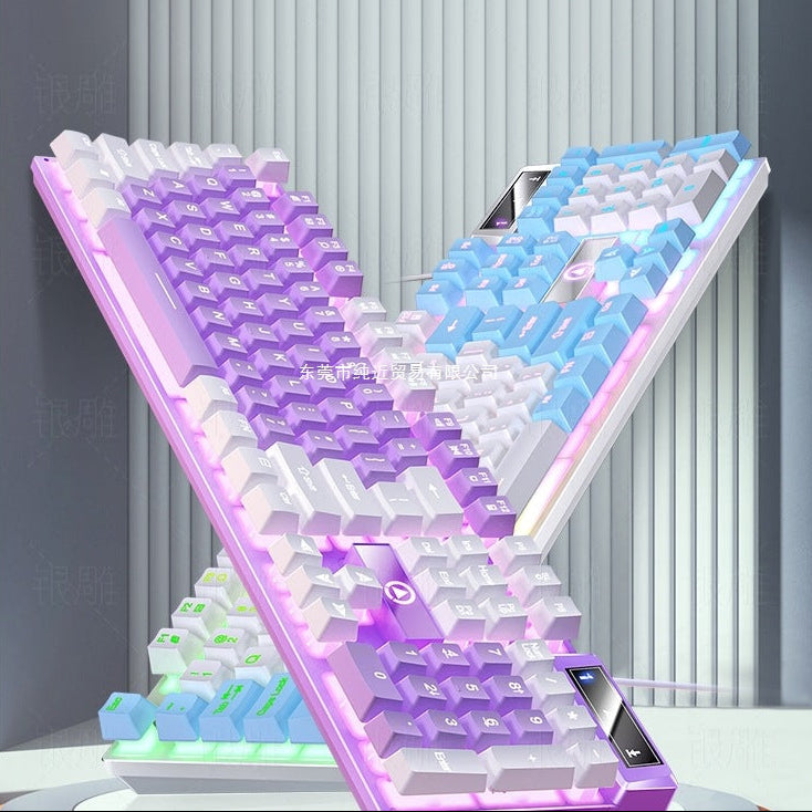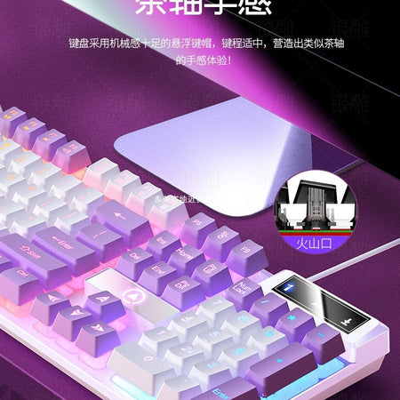 A mechanical-feel keyboard and mouse set suitable for office work and casual gaming. Reliable like decorative vases that complete a workspace.